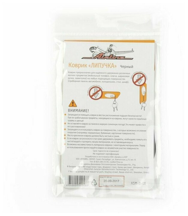 Коврик-Липучка Черный Airline Asm-B-01 AIRLINE арт. ASMB01