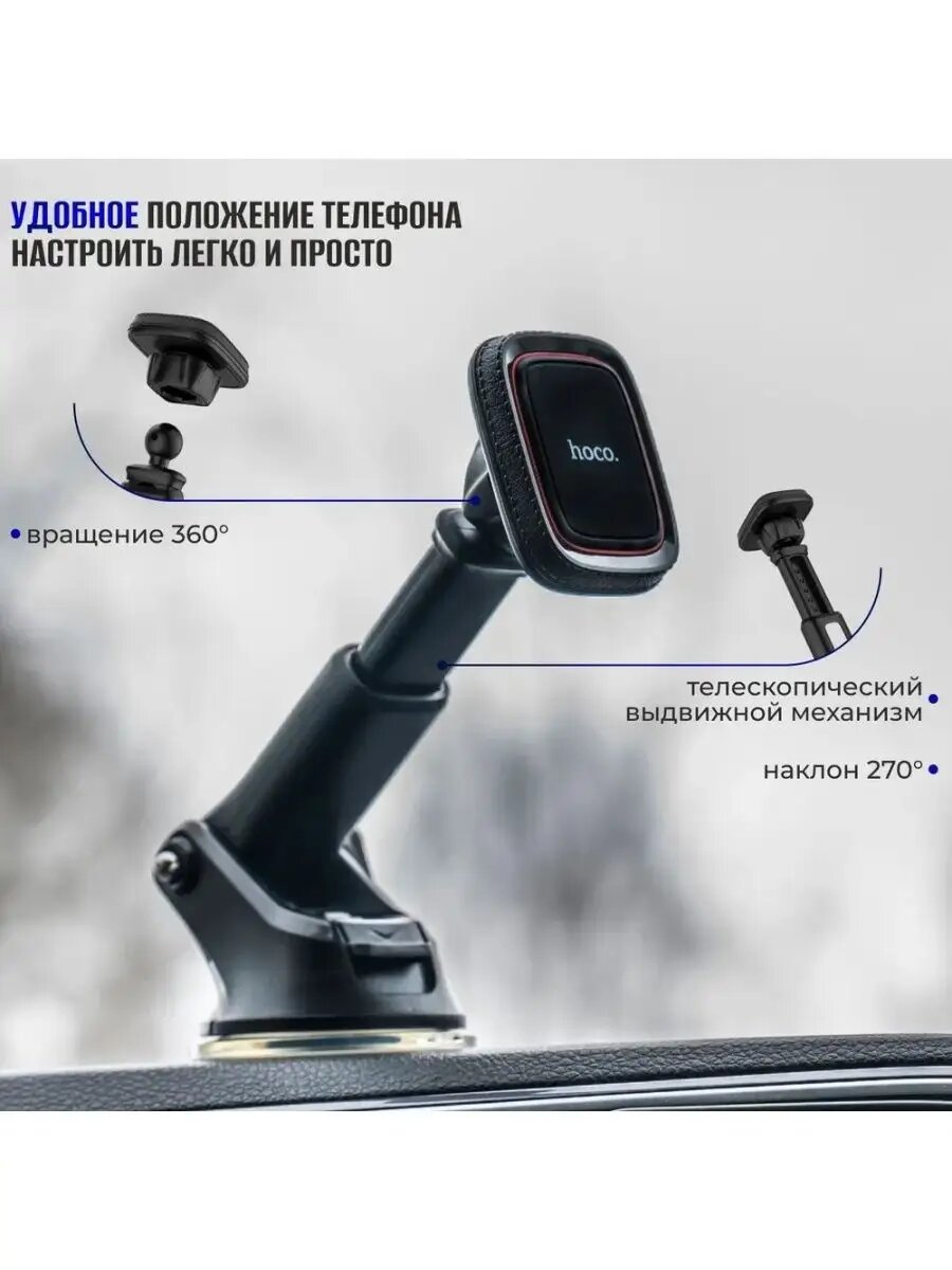 Магнитный держатель на торпедо/стекло Hoco CA42 Cool Journey, 6 магнитов, телескопический на присоске, Черный интересное: