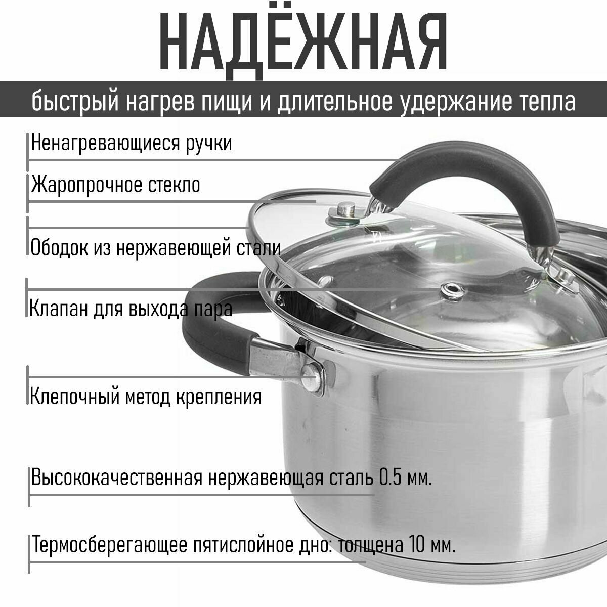 Набор кастрюль из нержавеющей стали для газовых, индукционных плит Webber с крышками (2,2л, 3л, 4л)