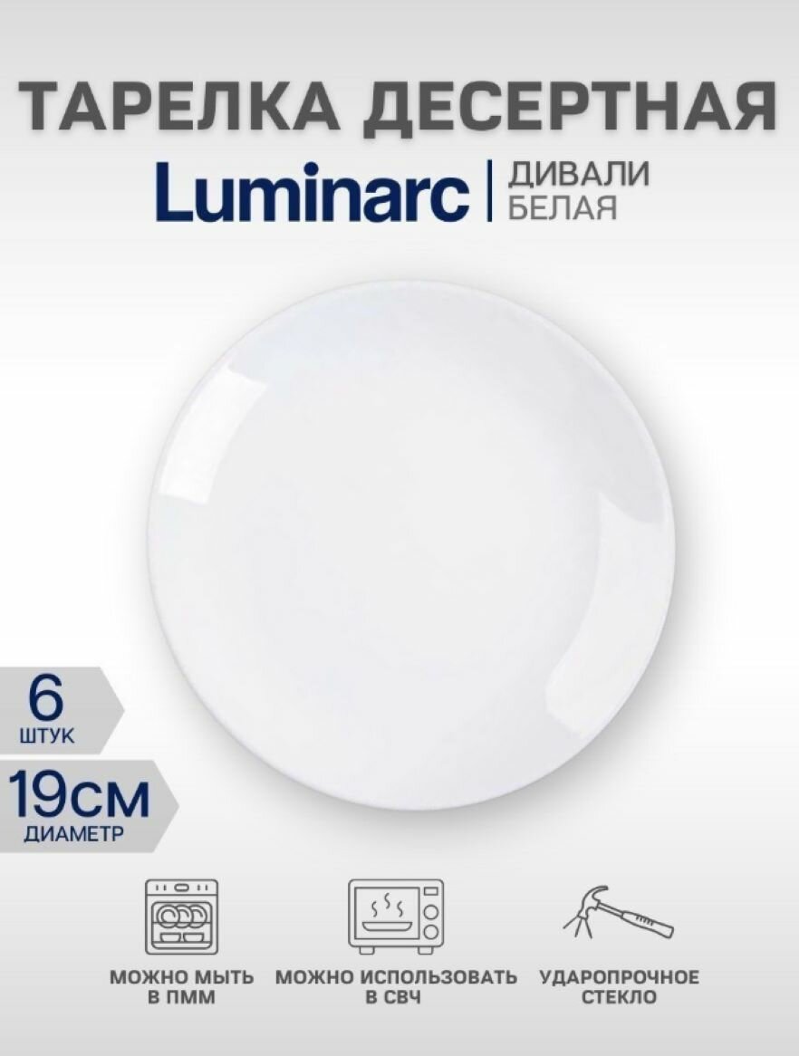 СохранитьТарелка десертная Luminarc дивали 19 см ,6 штук , белая интересное: