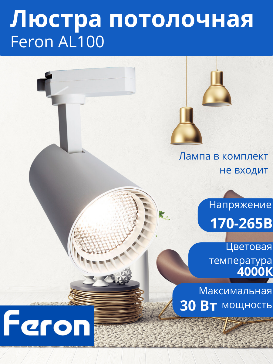Трековый светодиодный светильник FERON AL100