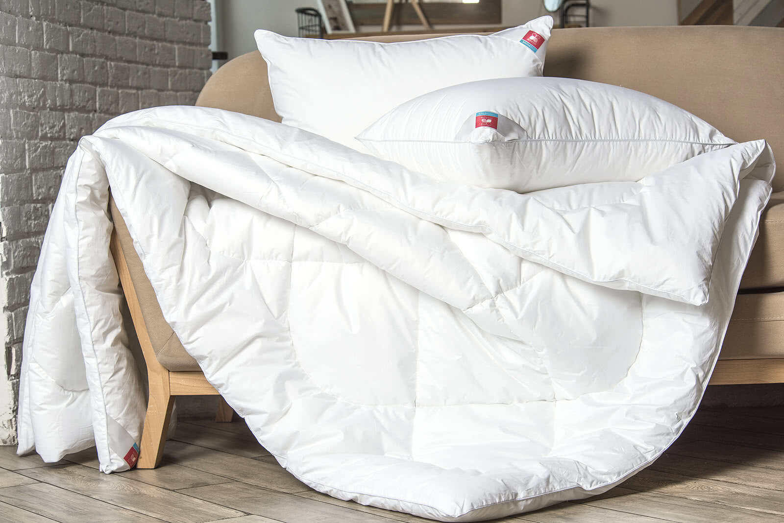 Одеяло Отельное лебяжий пух Кассетного типа 170х205 см, двуспальное 300гр/м2 / Horeca одеяло для отелей и гостиниц