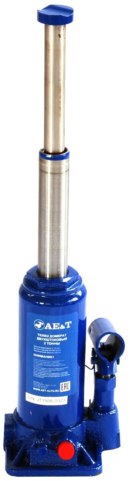 AE&T T02002 Домкрат бутылочный двухштоковый 2т