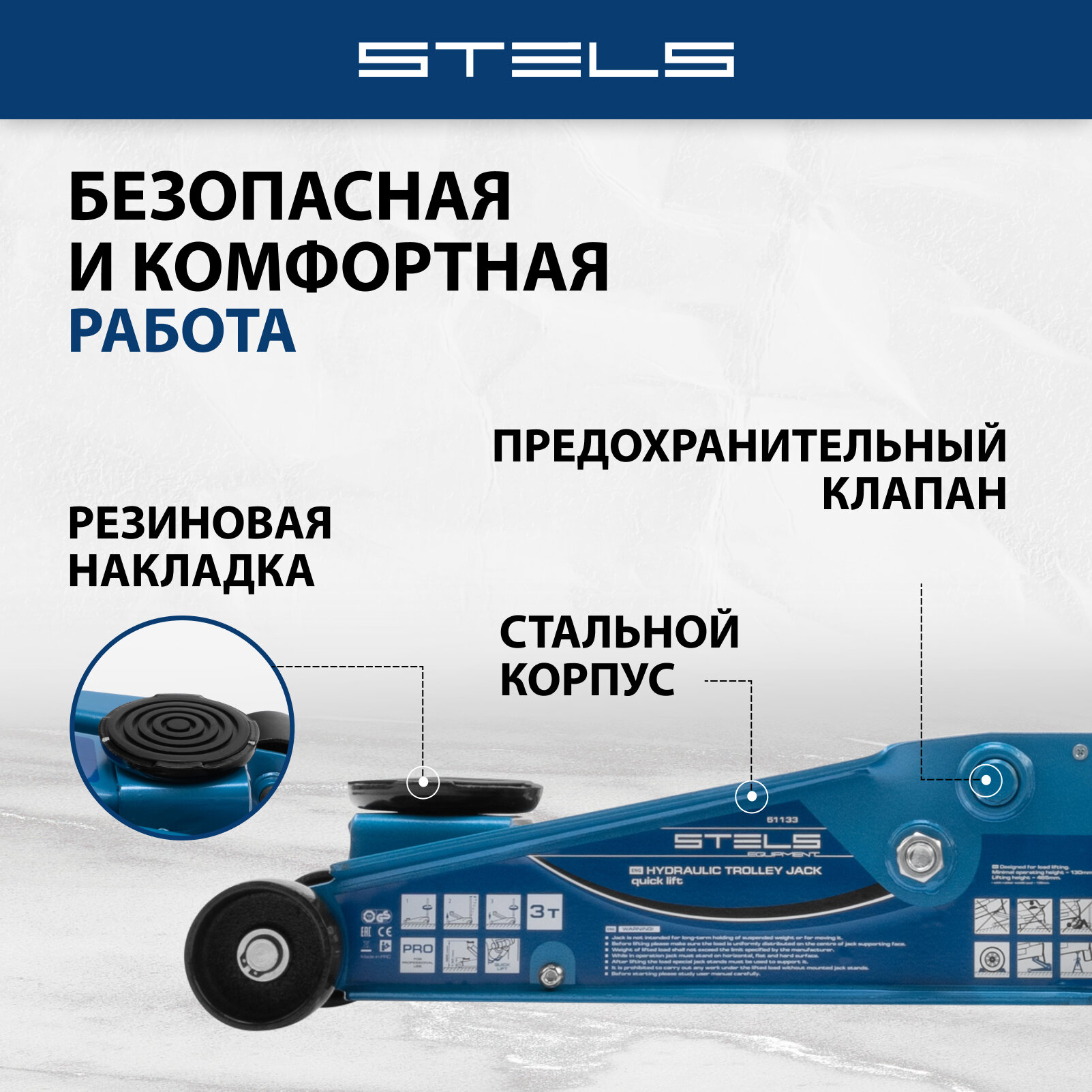 Домкрат STELS 51133 гидравлический подкатной быстрый подъем 3 т quick lift 130–465мм профессиональ