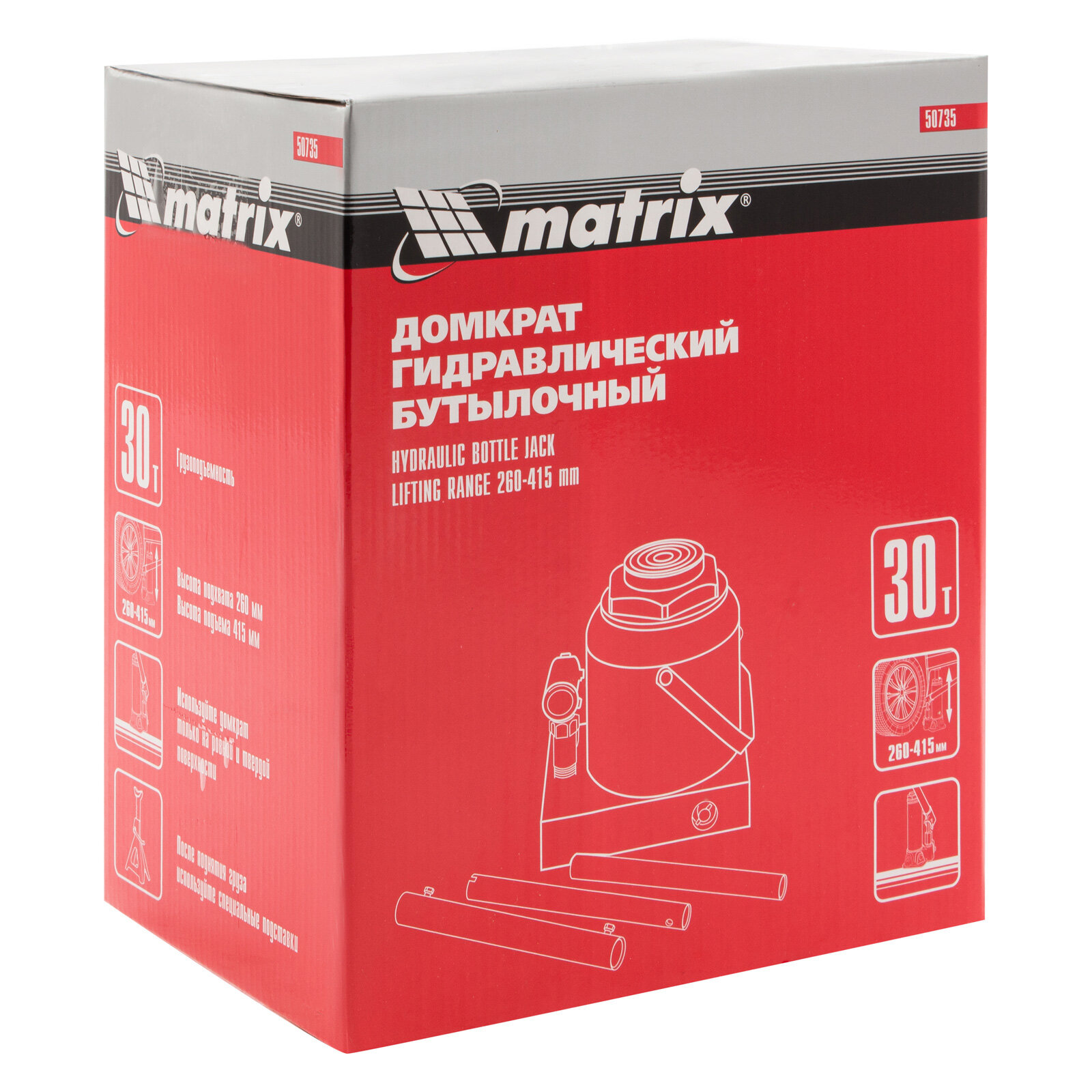 Домкрат гидравлический бутылочный, 30 т, h подъема 260-415 мм, MATRIX 50735