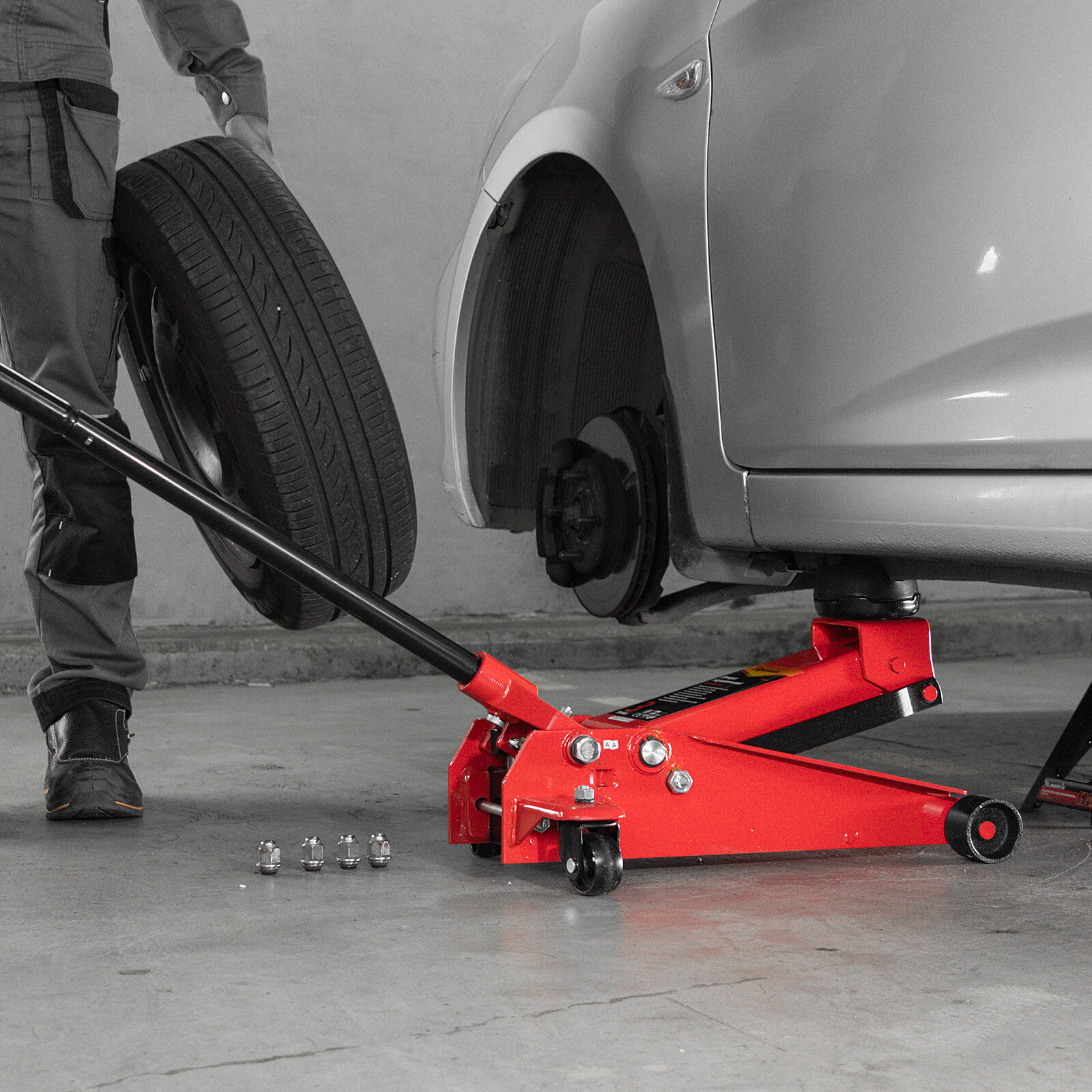 Мощный тяжелый устойчивый домкрат, широкая чашка, свободно поднимает минивэн ,Высота подъёма приличная. В комплекте есть запасные уплотнительные резинки. Кста это самый доступный по цене подкатной домкрат на 3 тонны в таком типоразмере