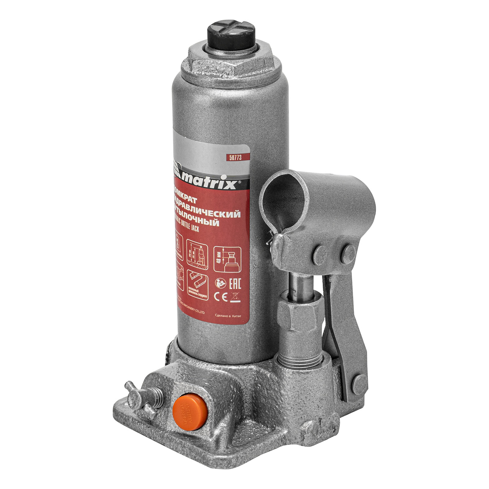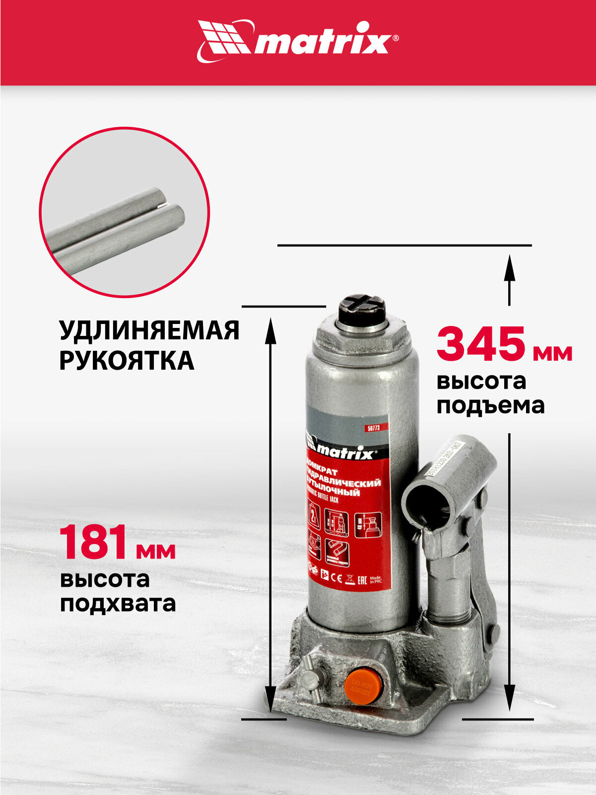Домкрат гидравлический бутылочный Matrix 50773, 2 т, h подъема 181–345 мм