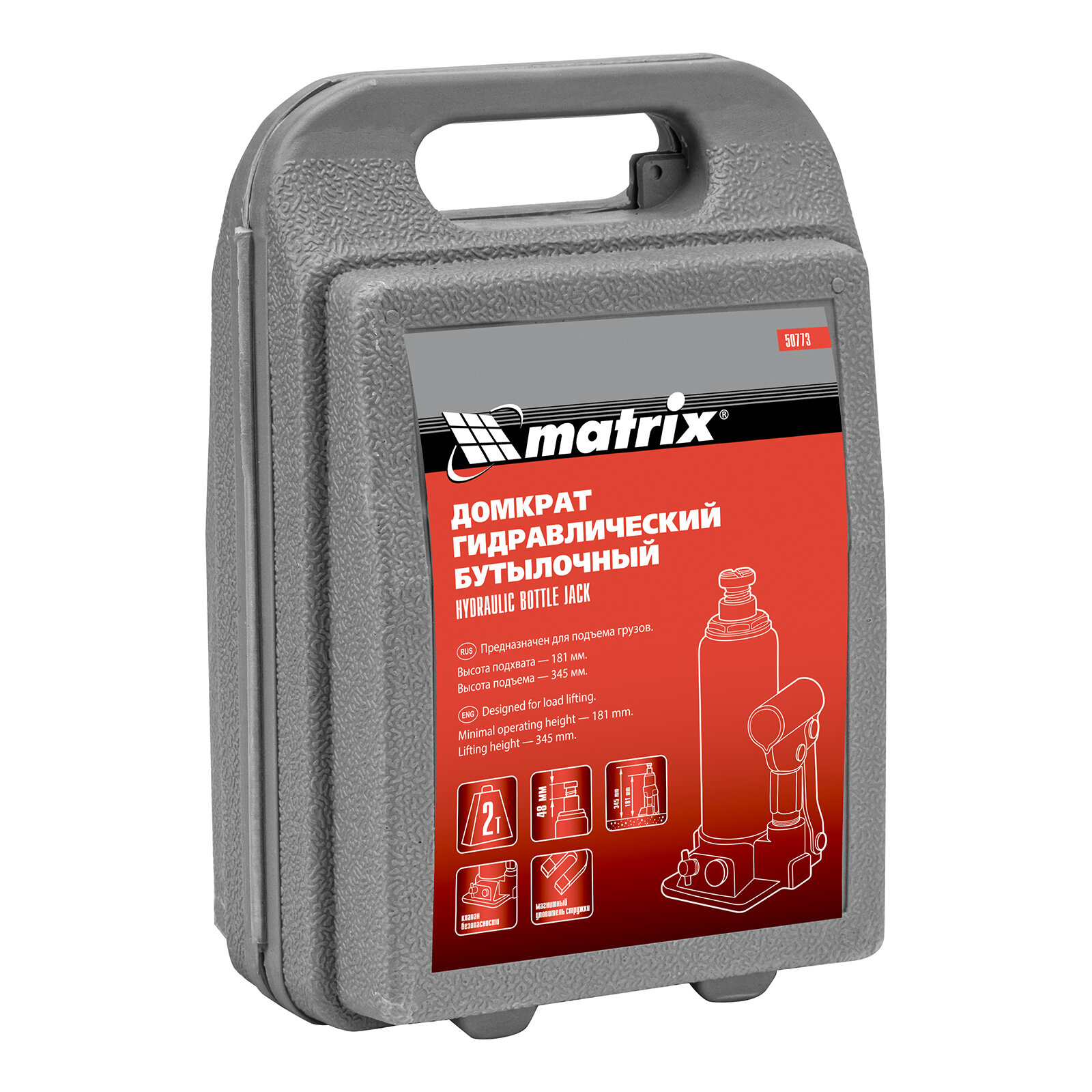 MATRIX 50773 Домкрат гидравлический 2т Matrix бутылочный в кейсе 181–345мм 50773