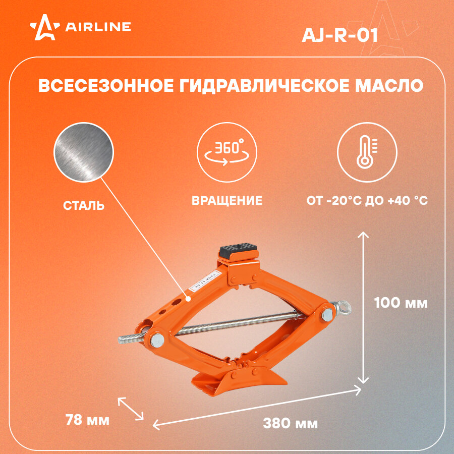 Домкрат механический AIRLINE AJ-R-01 (1 т) оранжевый
