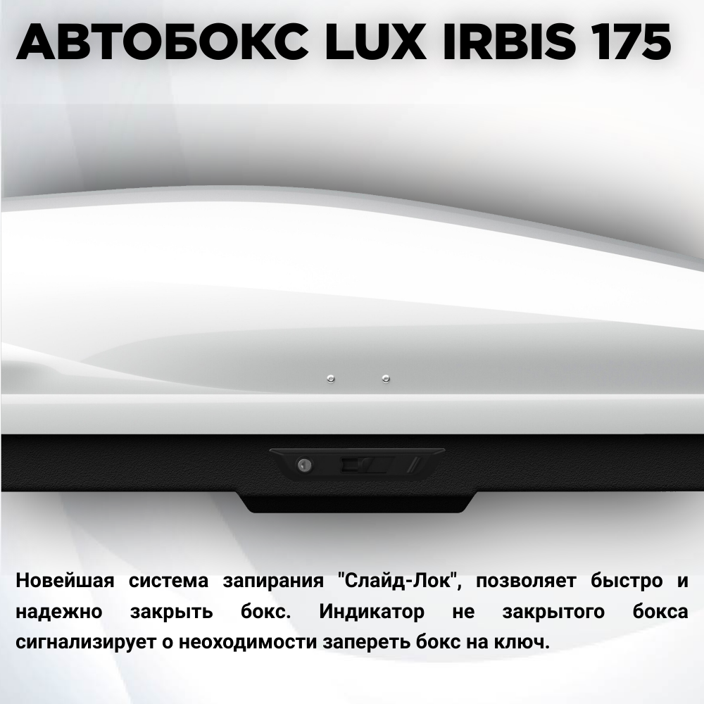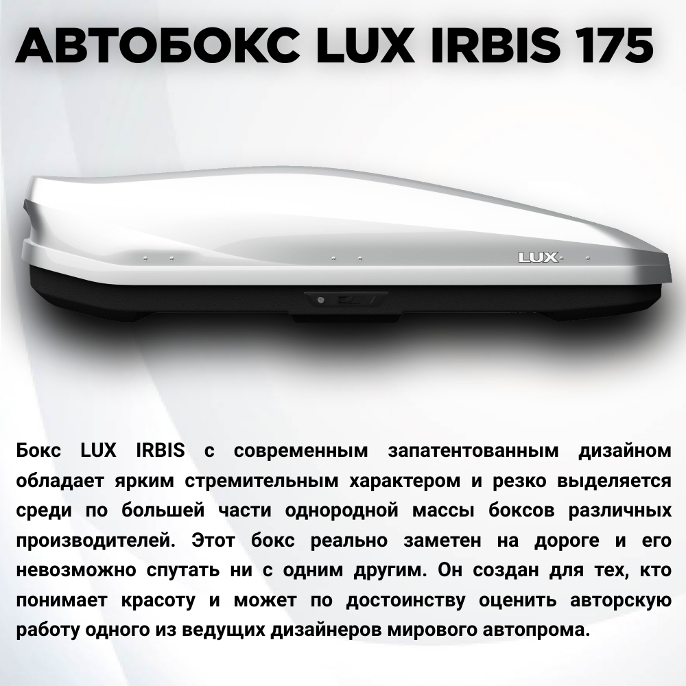 Автобокс на крышу автомобиля LUX IRBIS 175 (Люкс Ирбис 175), белый глянцевый, 450 литров, двустороннее открытие, 175х85х40см (арт. 791033)