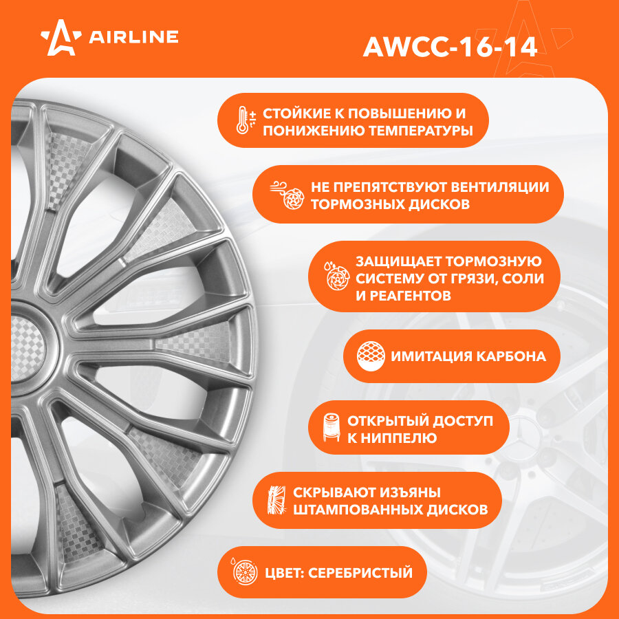 AIRLINE AWCC-16-14 Колпаки колесные 16 Волтек, серебристый, карбон, компл. 2 шт. (AWCC-16-14)