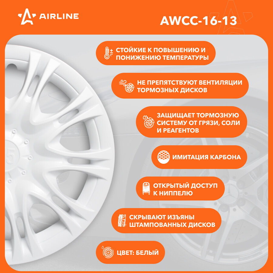 Колпаки на колеса Airline X5, 16", белые, 2шт, арт. AWCC-16-13
