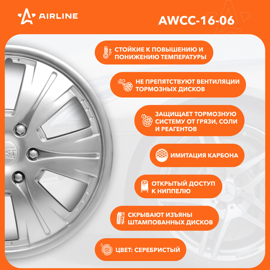 AWCC1606 AIRLINE Колпаки колесные 16 Бест, серебристый, компл. 2 шт. (AWCC-16-06)