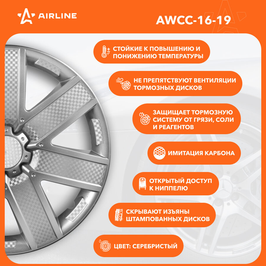 AIRLINE AWCC-16-19 AWCC-16-19_колпаки колесные! 16' 'Гелакси', серебристый, карбон, компл. 2 шт.\
