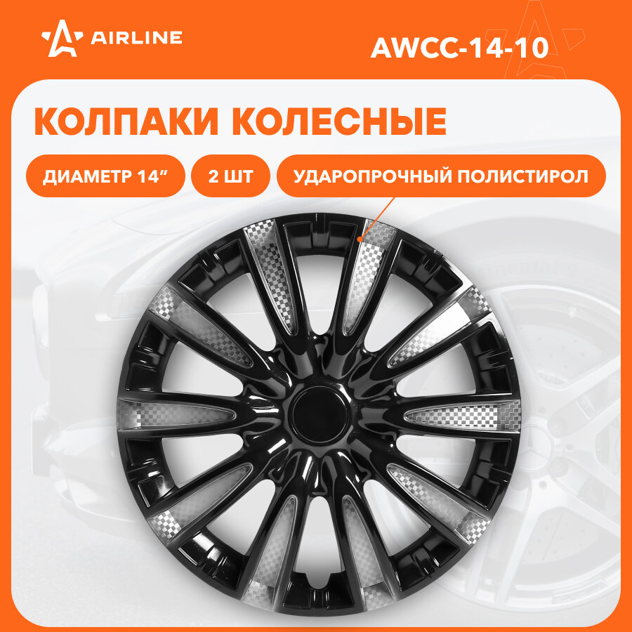 Колпаки Колесные Airline 14'' ''Торнадо Т'', Серебр/Черн, Карбон, Компл. 2 Шт AIRLINE арт. AWCC1410