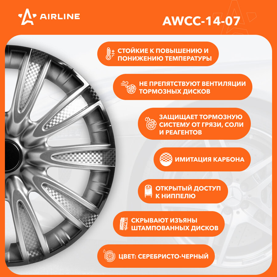 AIRLINE AWCC1407 AWCC-14-07_колпаки колесные! 14' 'Торнадо +', серебристо-черный, карбон, компл. 2 шт.\