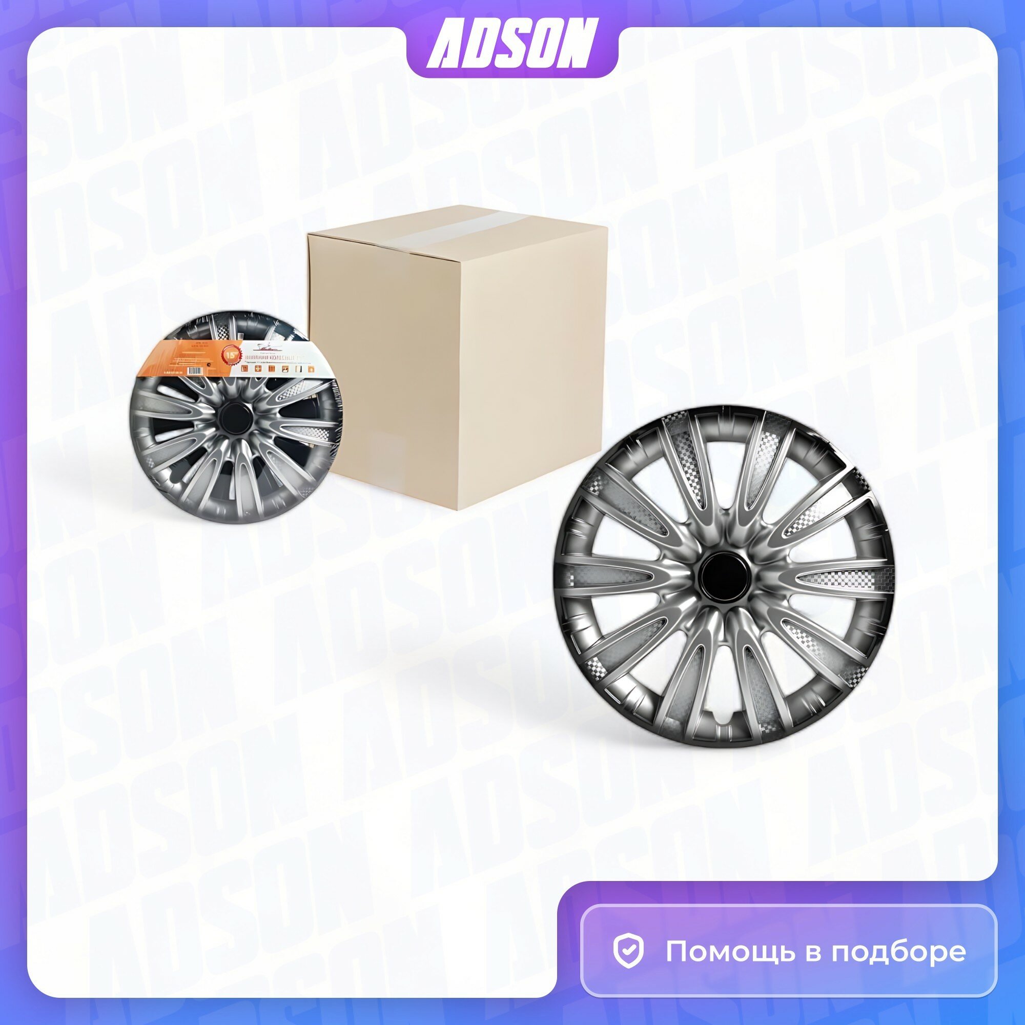 Колпаки колесные AIRLINE 14", Торнадо +, серебристо-черный/карбон, 2шт.