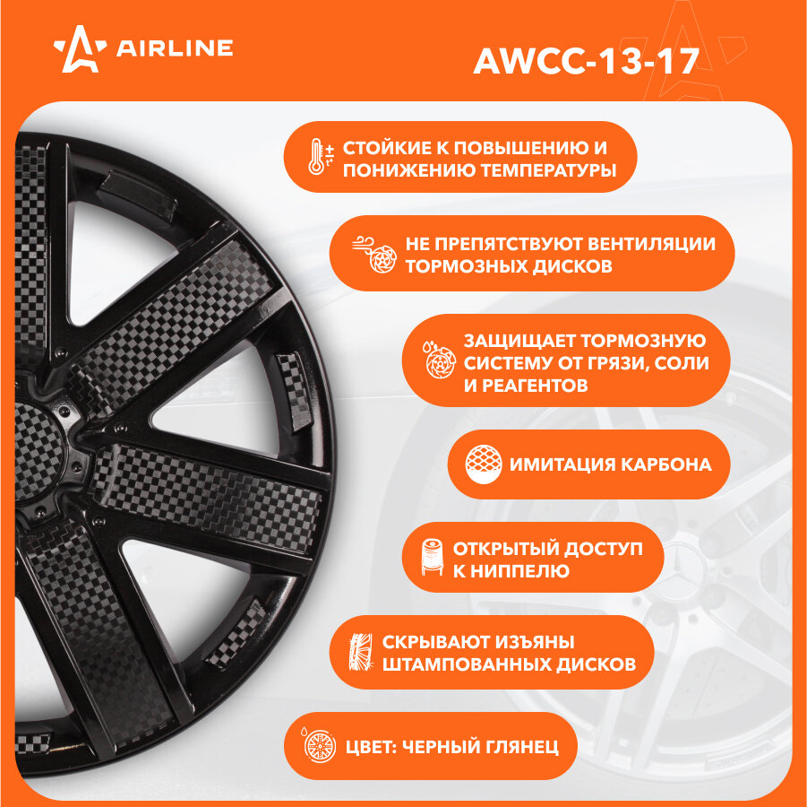 Колпаки Колесные 13 Супер Астра , Черный Глянец, Карбон, Компл. 2Шт. AIRLINE арт. AWCC1322