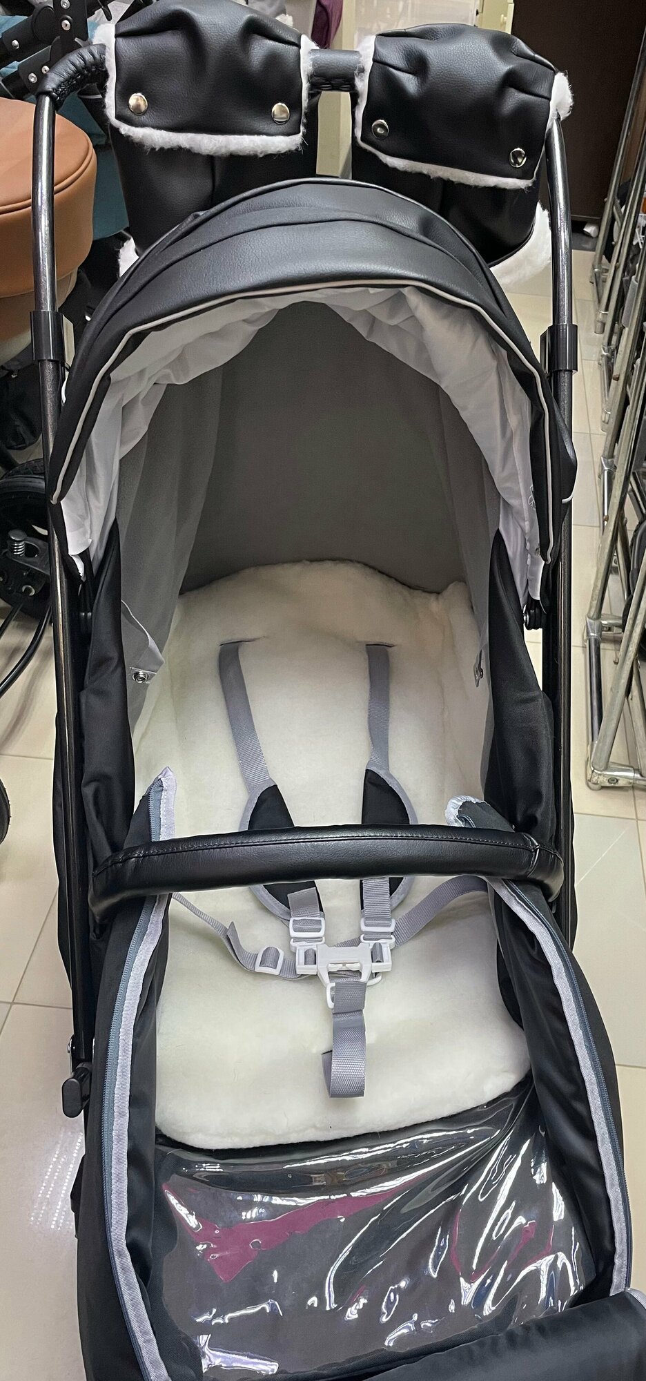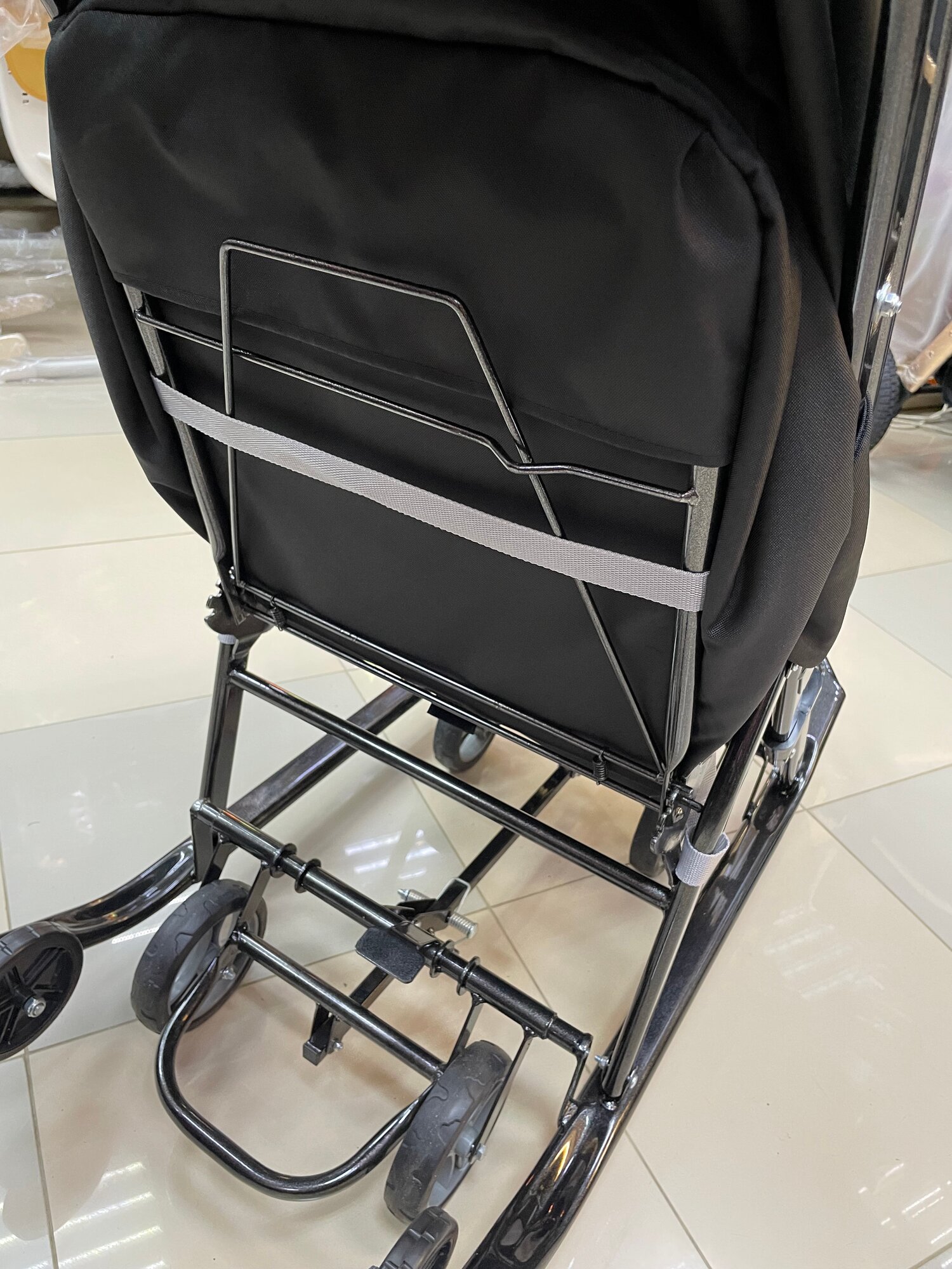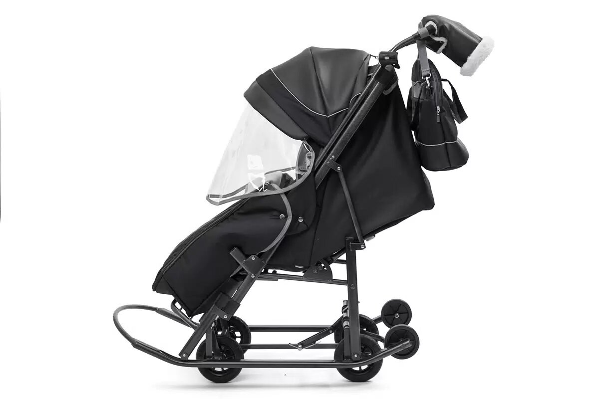 Санки-коляска Pikate Deluxe, перекидная ручка, сумка, варежки, цвет: черный/black интересное:
