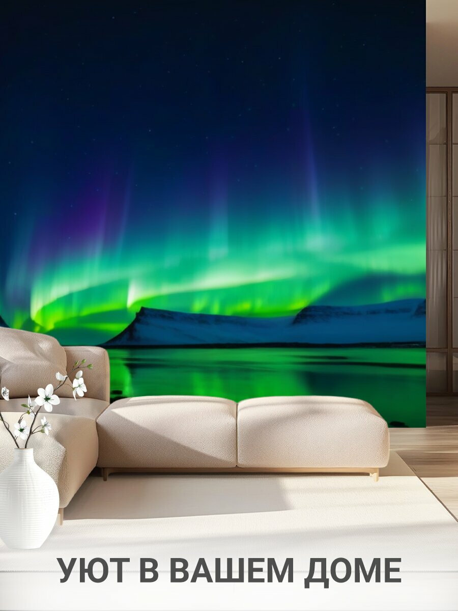 Фотообои моющиеся ударопрочные "Луна на фоне северного сияния" 300x300 см. флизелиновые на стену интересное: