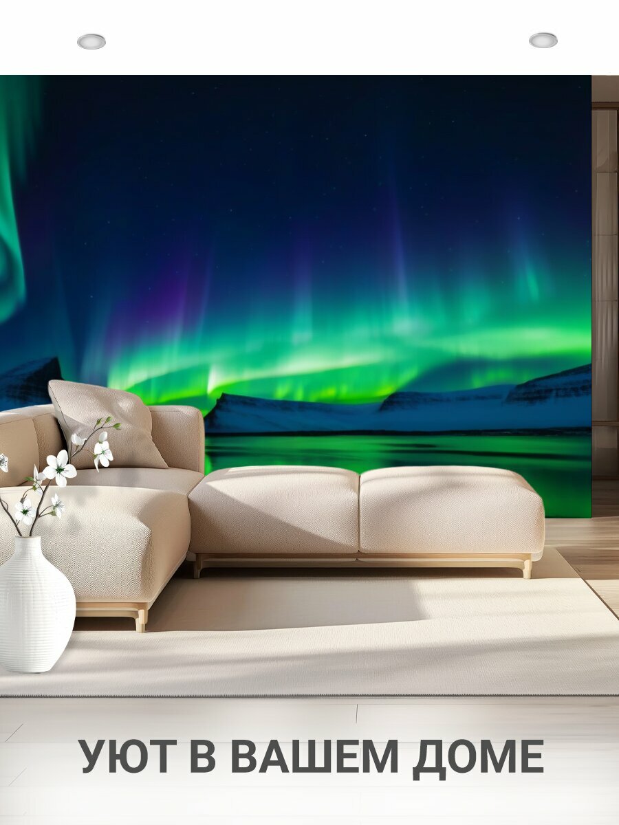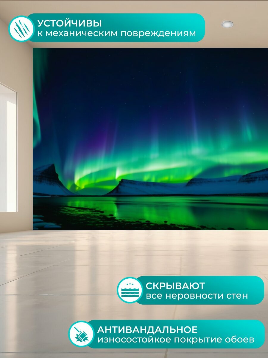 Фотообои моющиеся ударопрочные "Луна на фоне северного сияния" 400x300 см. флизелиновые на стену интересное: