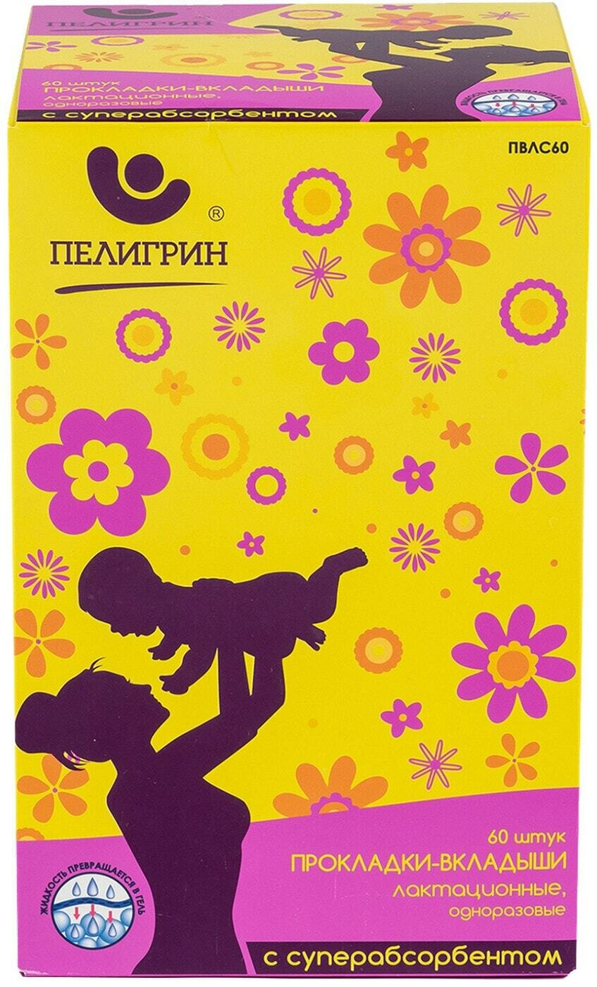 Пелигрин, Прокладки-вкладыши лактационные одноразовые с суперабсорбентом, набор 60 штук