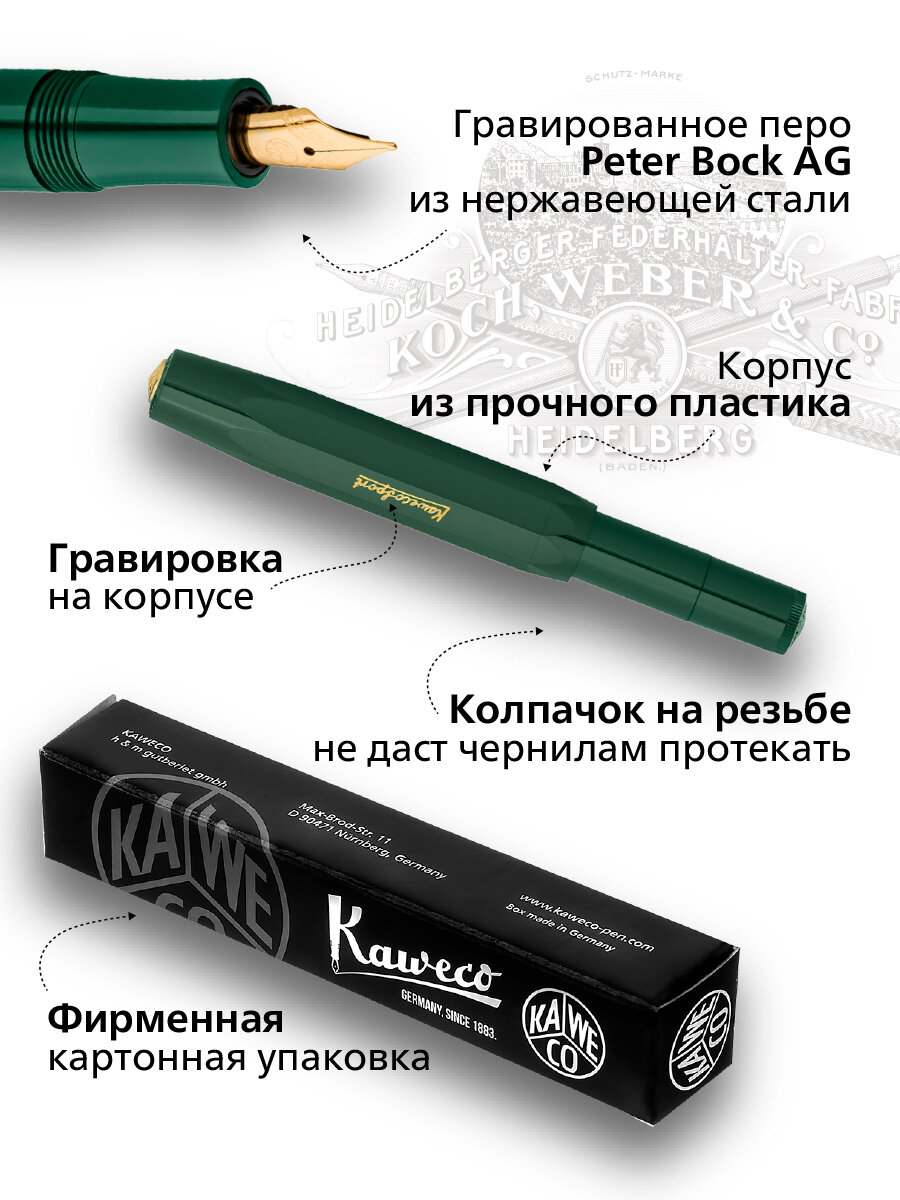 СохранитьРучка перьевая Kaweco Classic Sport M зеленая (корпус из пластика, перо позолота) интересное: