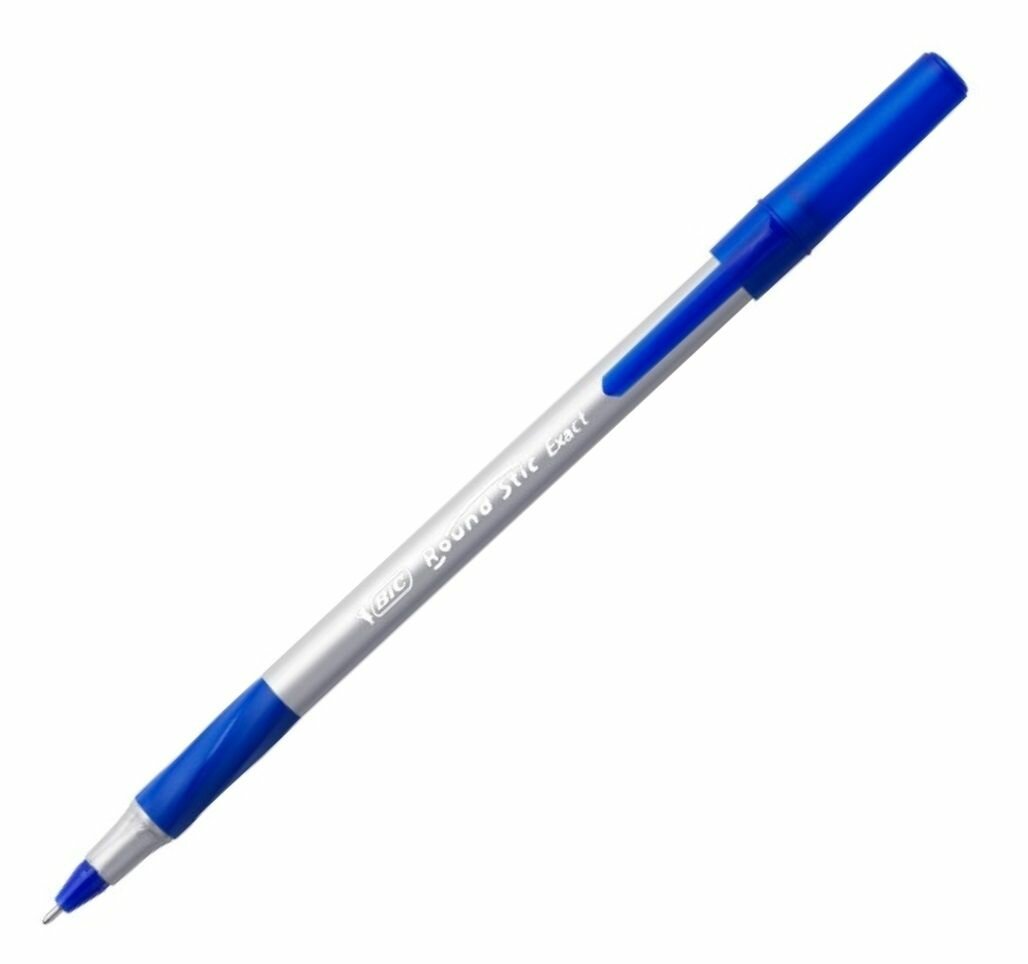 Ручки шариковые синие BIC Round Stic Exact, тонкий стержень для точного письма, 8 штук в упаковке