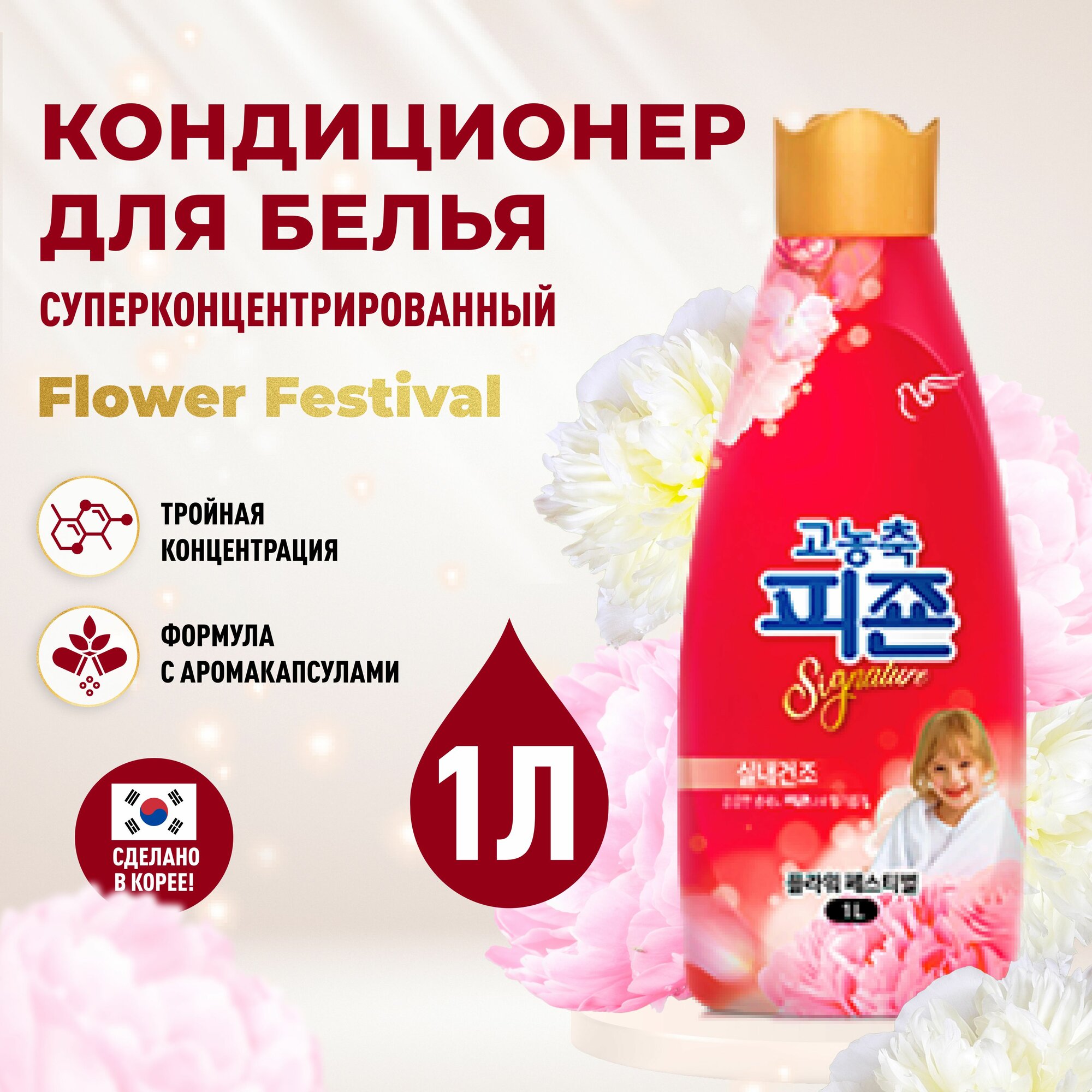 Кондиционер-ополаскиватель для белья Pigeon (korea) PIGEON Flower Festival концентрированный, 1 л