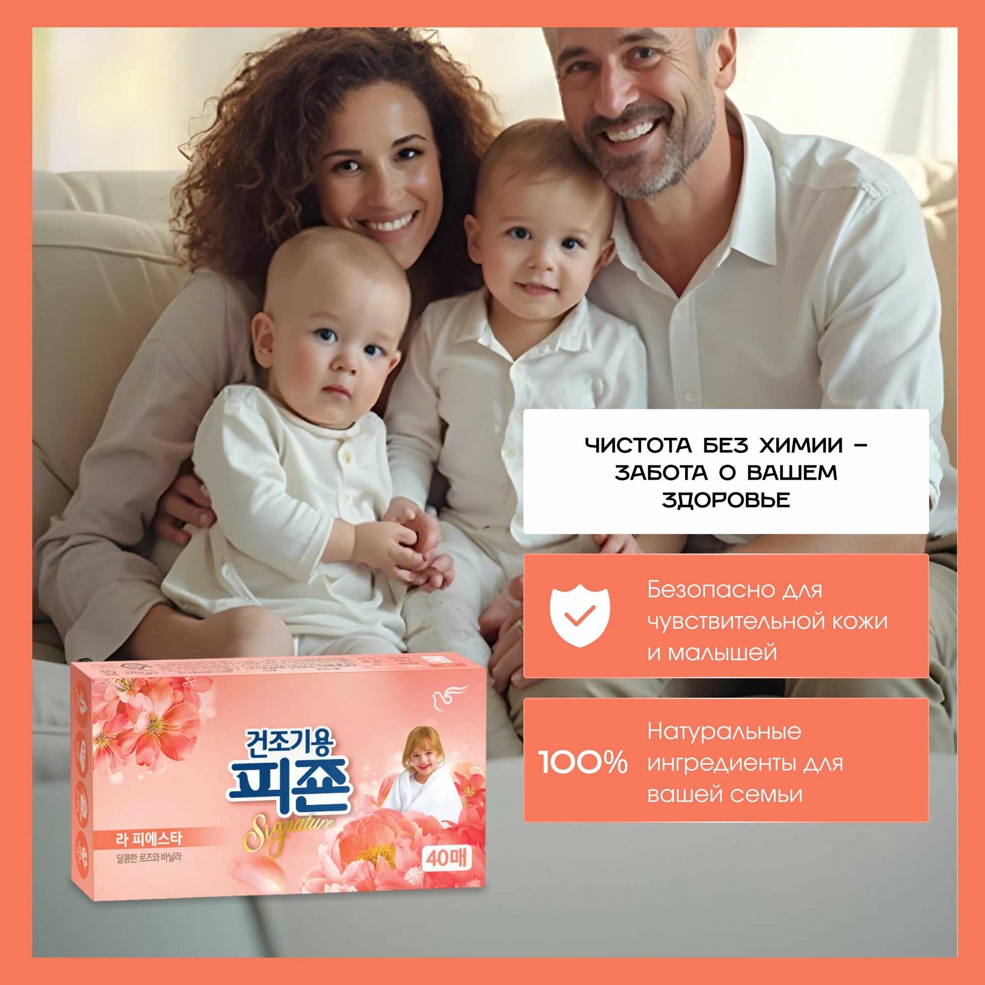 Pigeon Кондиционер для белья Rich Perfume Dryer Sheet Signature аромат Тайны дождя салфетки-кондиционер для сушки белья в сушильной машине 40 листов