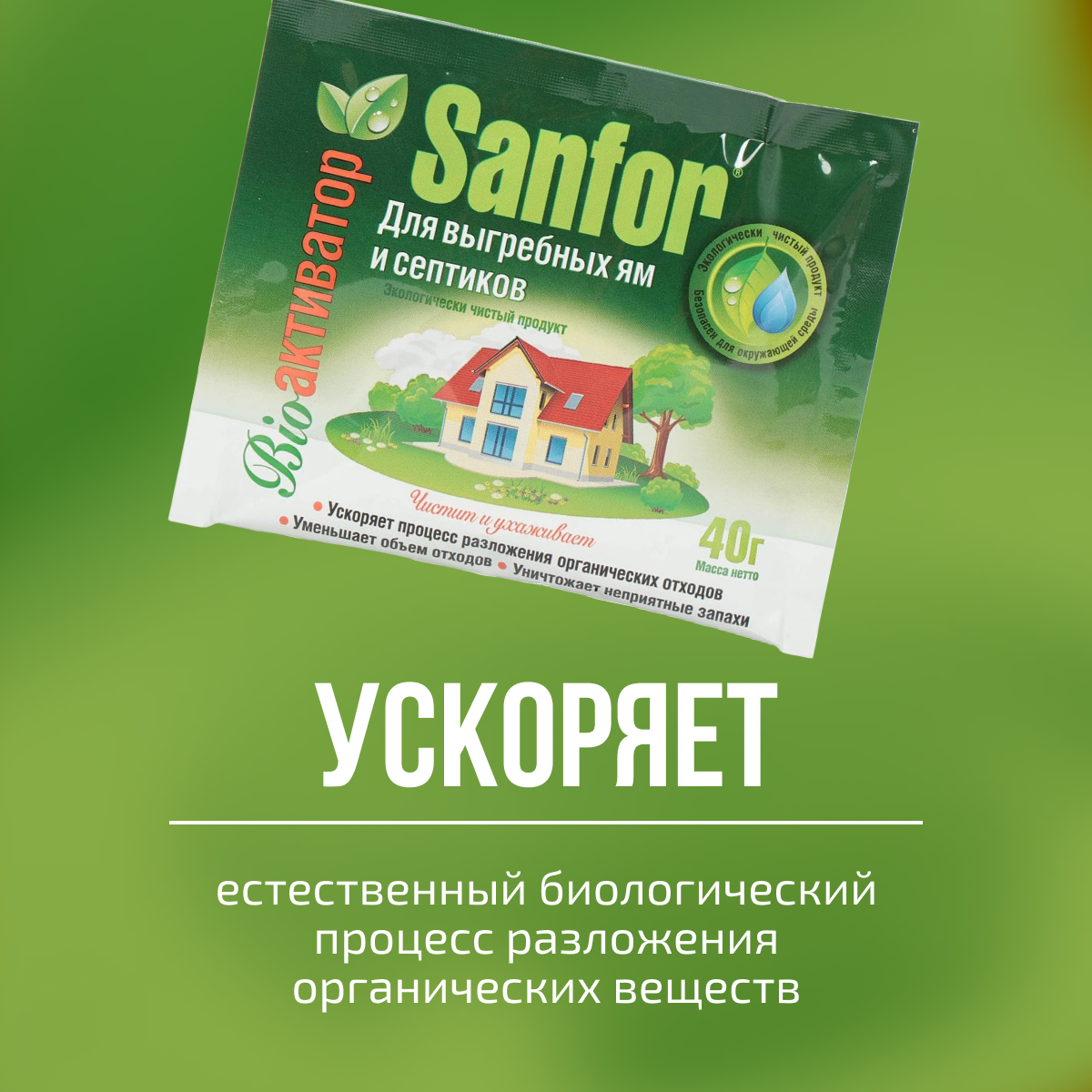 Средство чистящее SANFOR 40г д/выгребных ям и септиков пакет