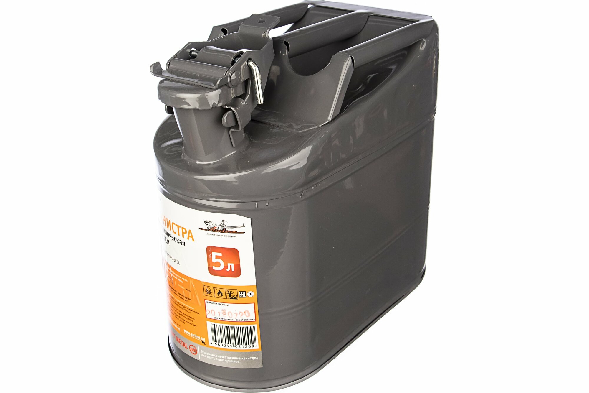 AIRLINE ACF5M ACF-5M_канистра металлическая вертикальная ! 5л зажимная крышка с фиксатором (серая)\ 1шт