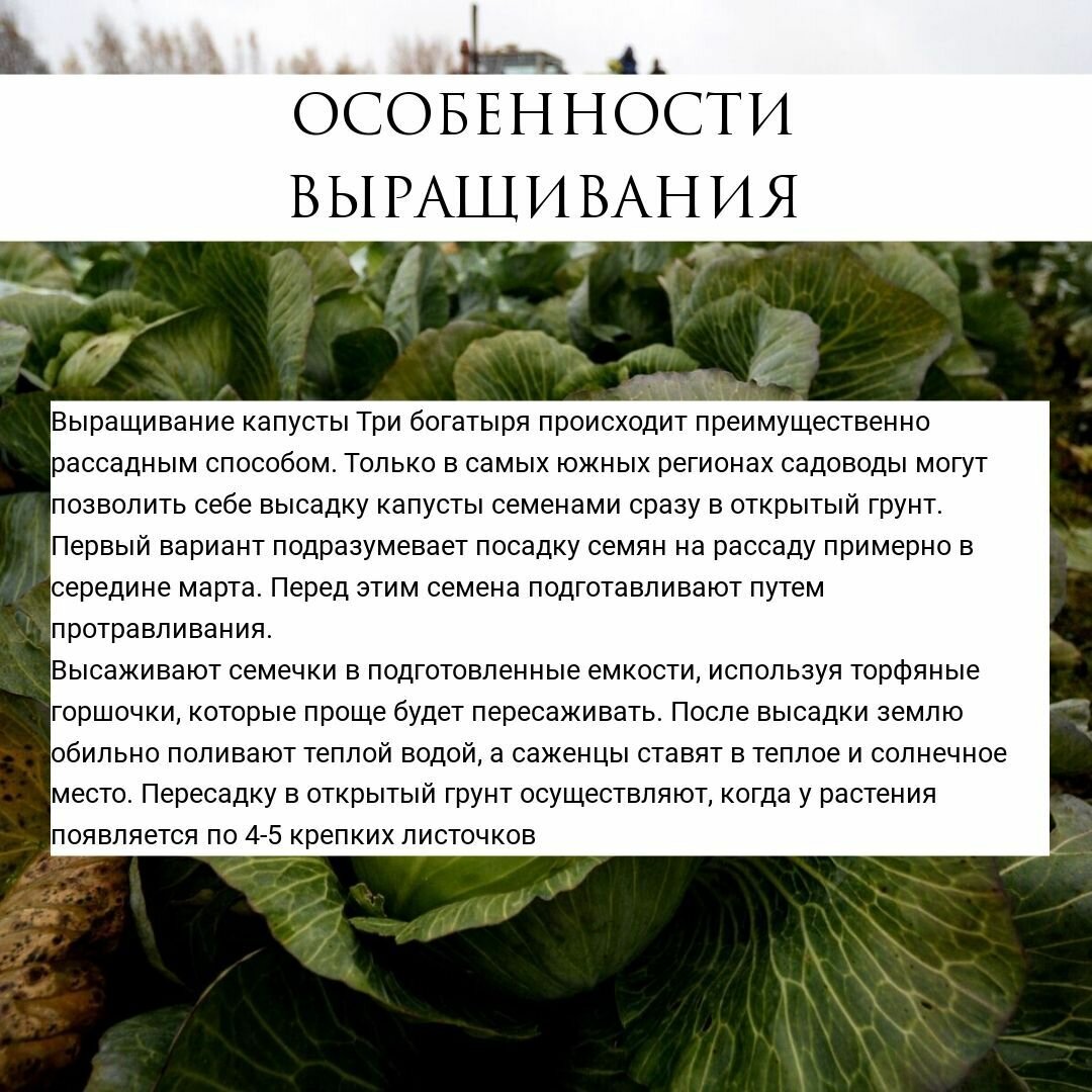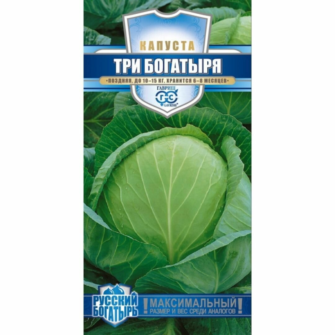 Ниже Вы можете прочитать отзывы на Семена Капуста белокочанная Три богатыря, 0,5г, Гавриш, Русский богатырь, 10 пакетиков, ознакомится с подробными характеристиками, посмотреть интересные обзоры и фотографии на Семена Капуста белокочанная Три богатыря, 0,5г, Гавриш, Русский богатырь, 10 пакетиков.