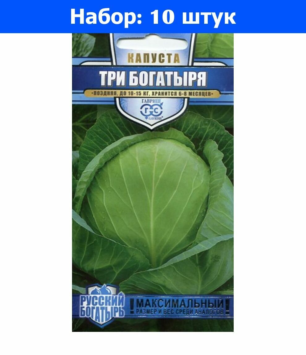 Семена 10 упаковок! Капуста б/к Три богатыря 0,5г Поздн (Гавриш) Русский богатырь