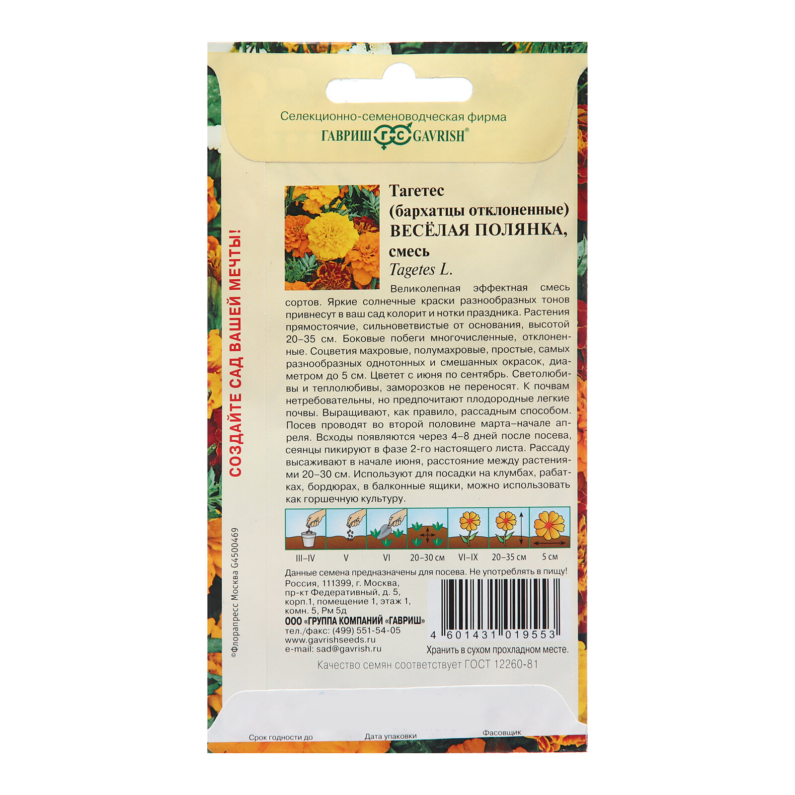 Семена Гавриш Бархатцы отклоненные (тагетес) Веселая полянка 0,3 г
