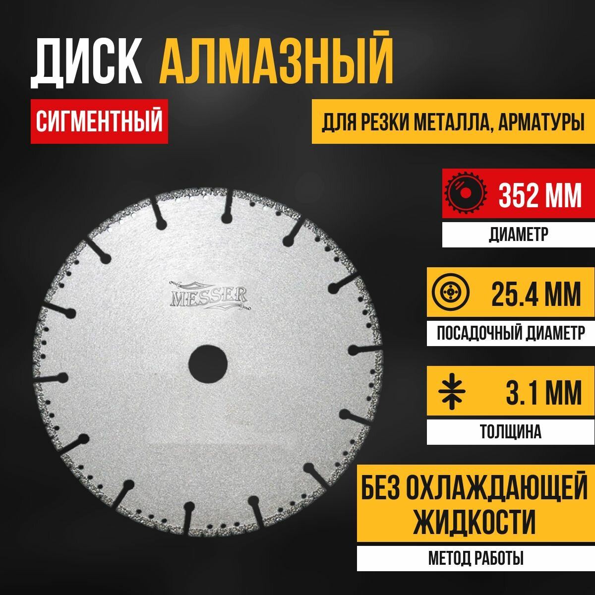 Купить Алмазный диск для резки металла Messer F/M. Диаметр 352 мм. (01-61-350)
