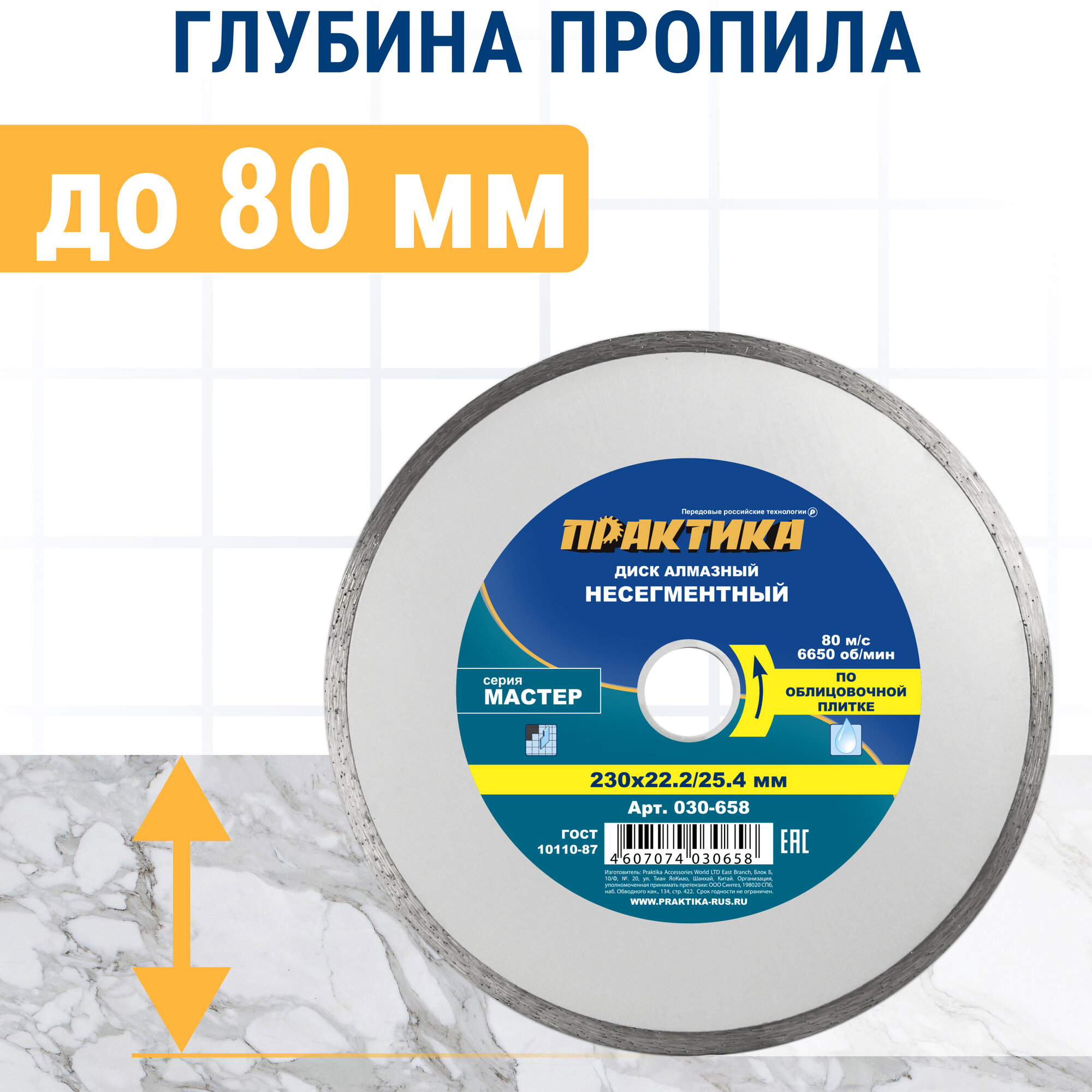 Диск алмазный 230 х 25.4/22.2 мм "Мастер" (керамическая плитка) ПРАКТИКА 030-658