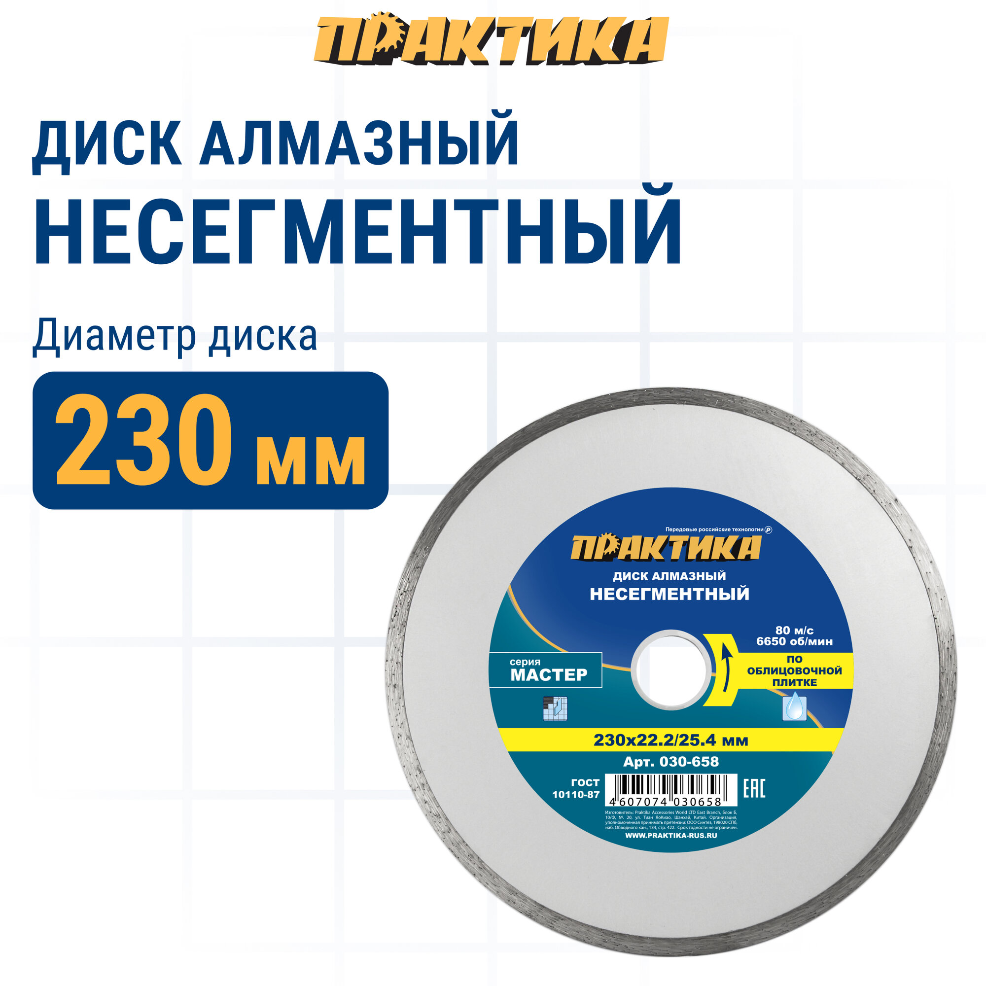 Диск алмазный ПРАКТИКА Мастер, сплошной, d230х25.4/22.2мм (030-658)