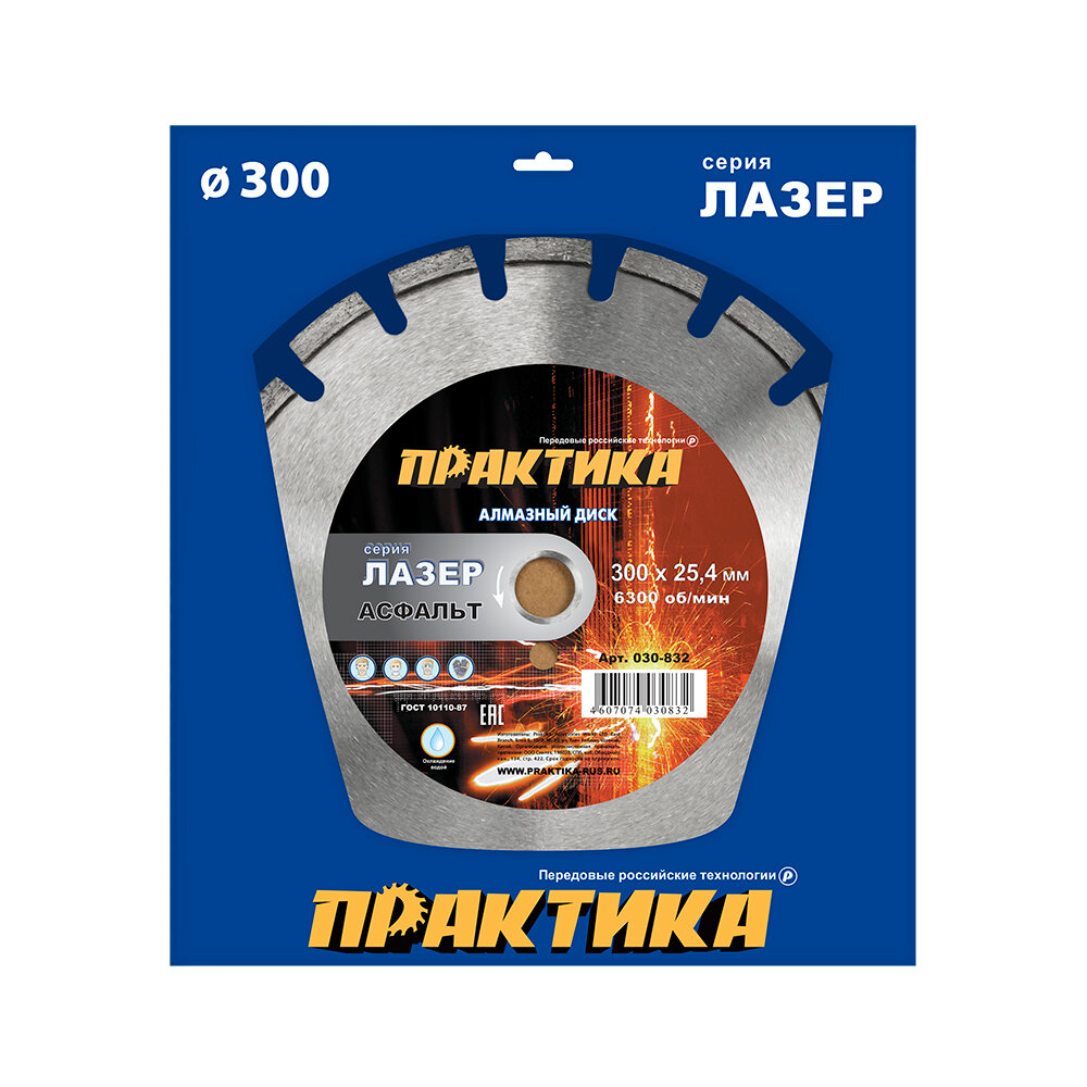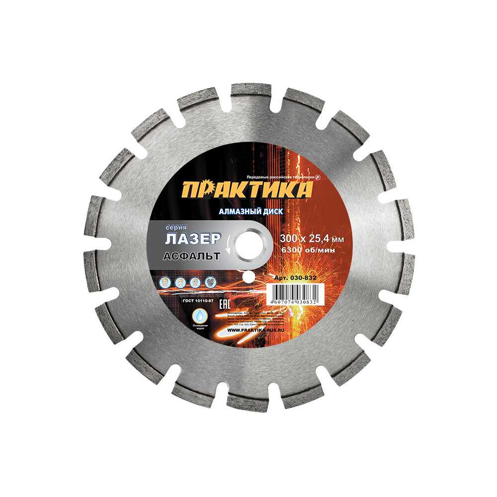 СохранитьДиск алмазный сегментный ПРАКТИКА "Лазер-90-Асфальт" 300 х 25,4 мм, сегмент 10мм (1шт.) коробка ("Лазер-90-Асфальт", 300х25,4мм, сегмент 10мм, коробка) интересное: