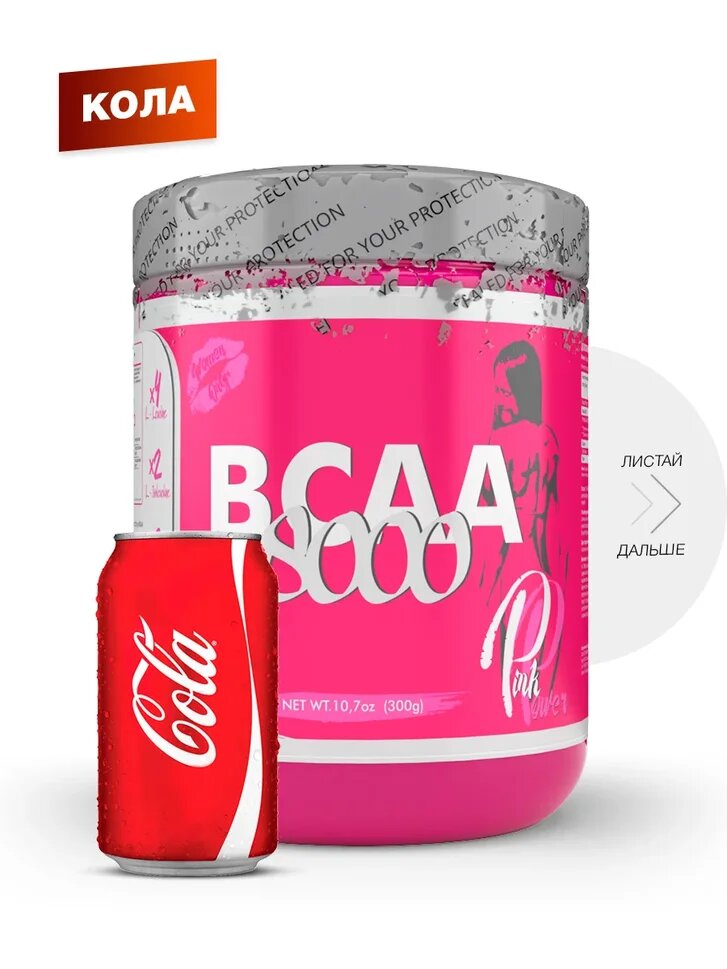 Аминокислоты PinkPower BCAA 8000, 300 гр, Кола (ВСАА 2-1-1)