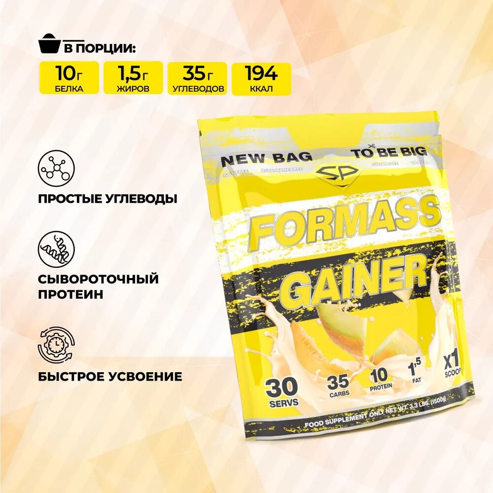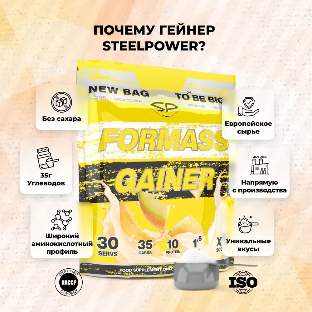 Гейнер STEELPOWER для набора мышечной массы FORMASS GAINER, 1500 грамм, со вкусом Сладкая Дыня