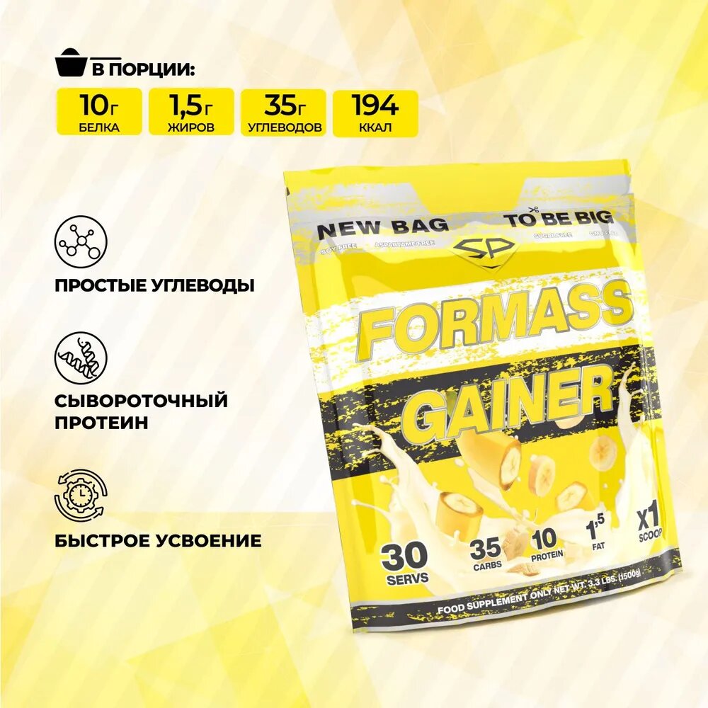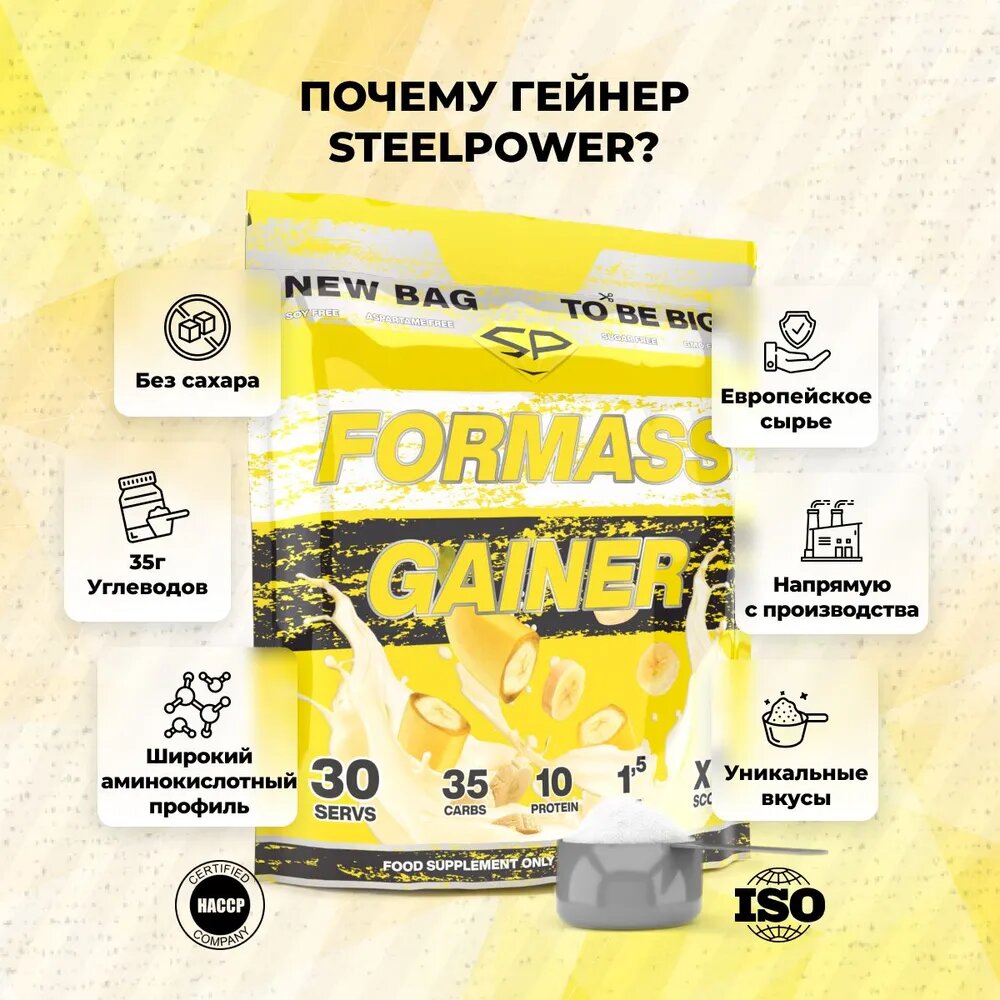 SteelPower Гейнер FORMASS GAINER, 1500 гр, вкус «Банан», STEELPOWER