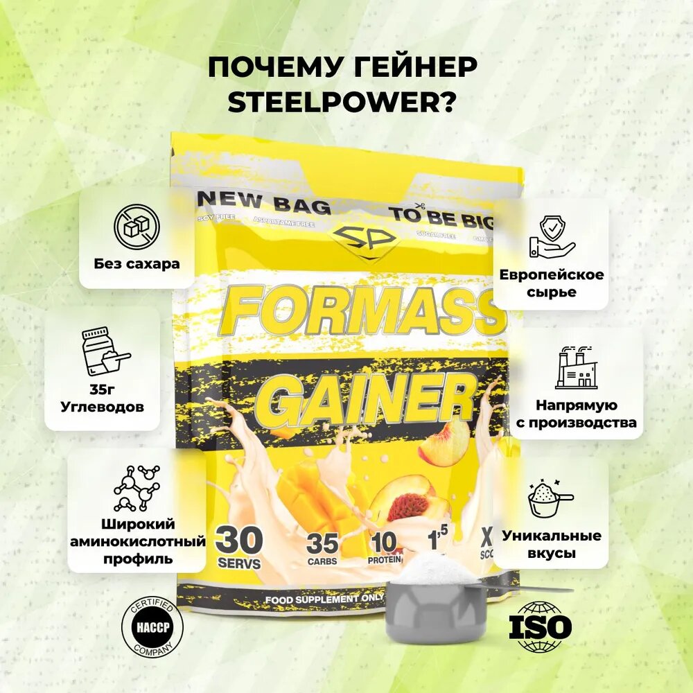 Гейнер STEELPOWER для набора мышечной массы FORMASS GAINER, 1500 грамм, со вкусом Персик Манго