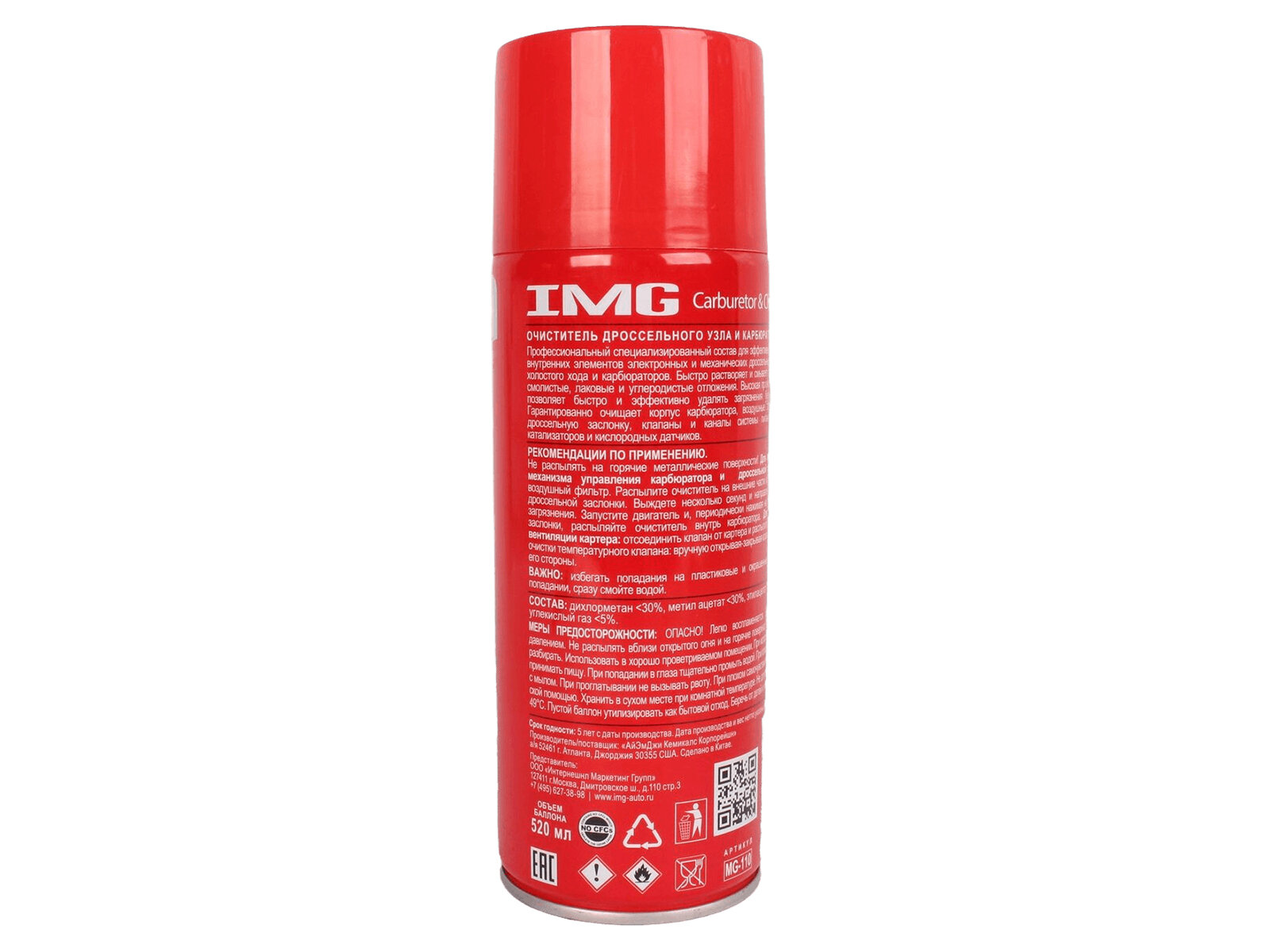 IMG MG110 Очиститеь карбюратора и дроссеьного механизма 520 м (аэрозоь) (10702070/181019/0215331/03, Китай