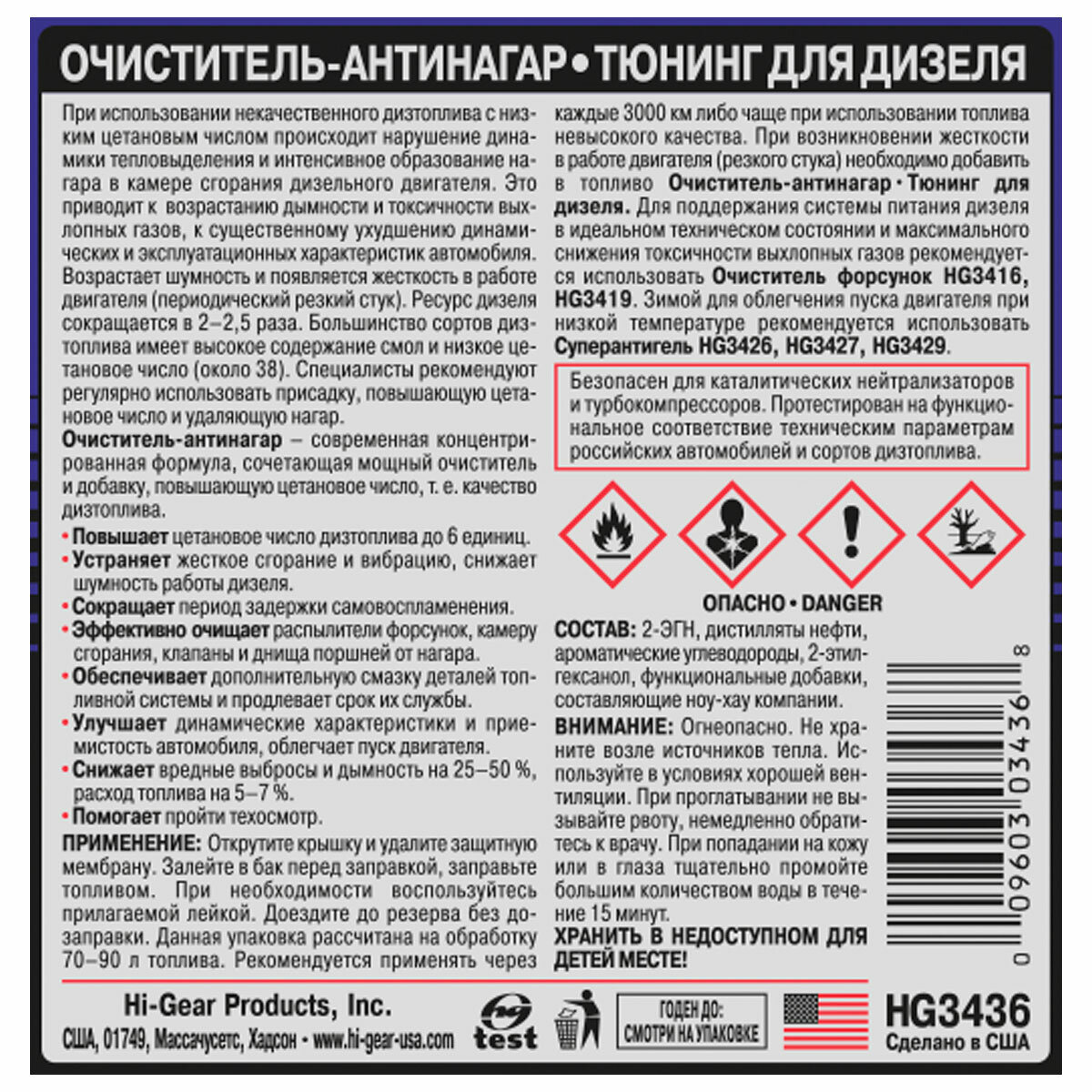 HI-GEAR HG3449 очиститель-антинагар и тюнинг для дизеля