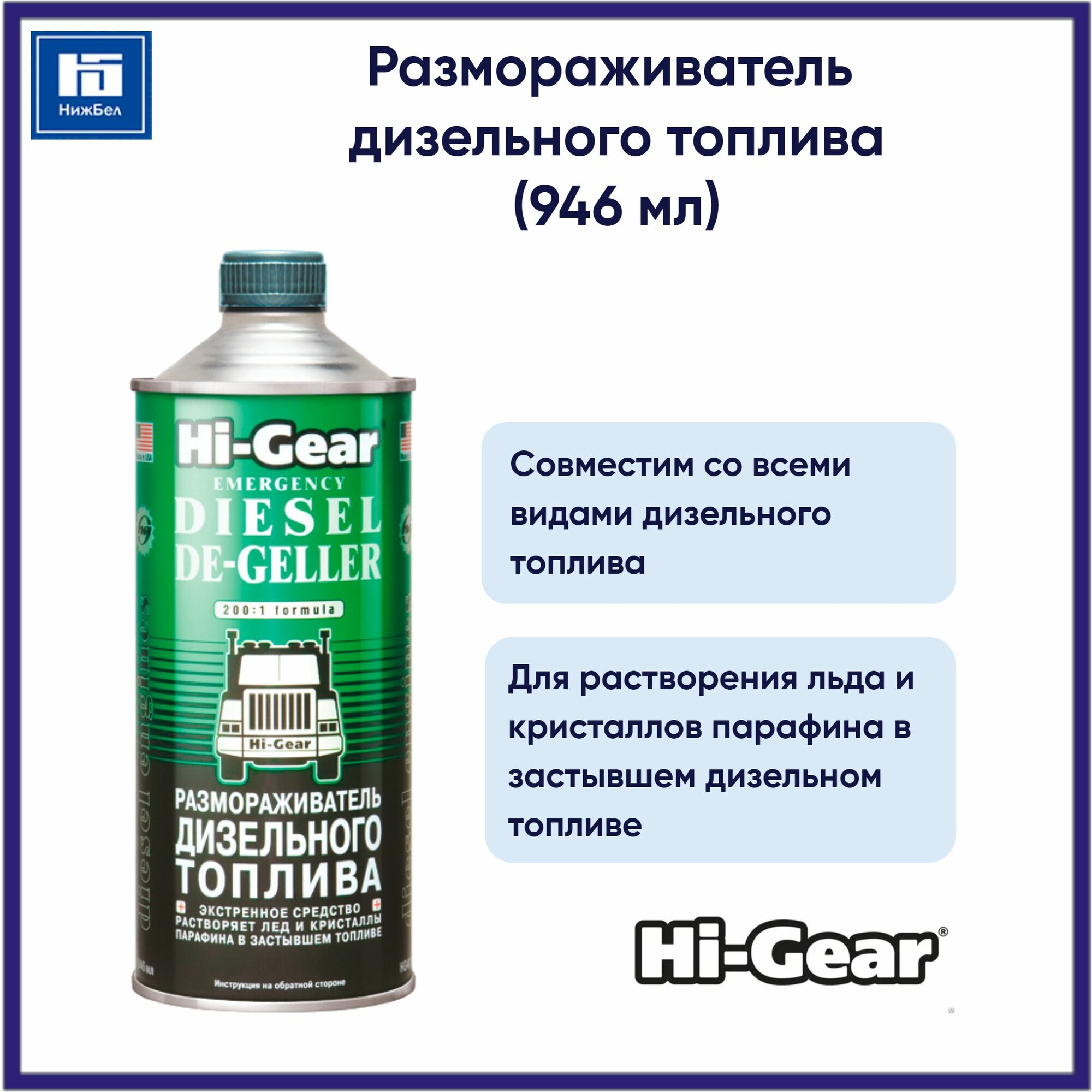 Размораживатель для дизельного топлива "HI-GEAR" (946 мл)