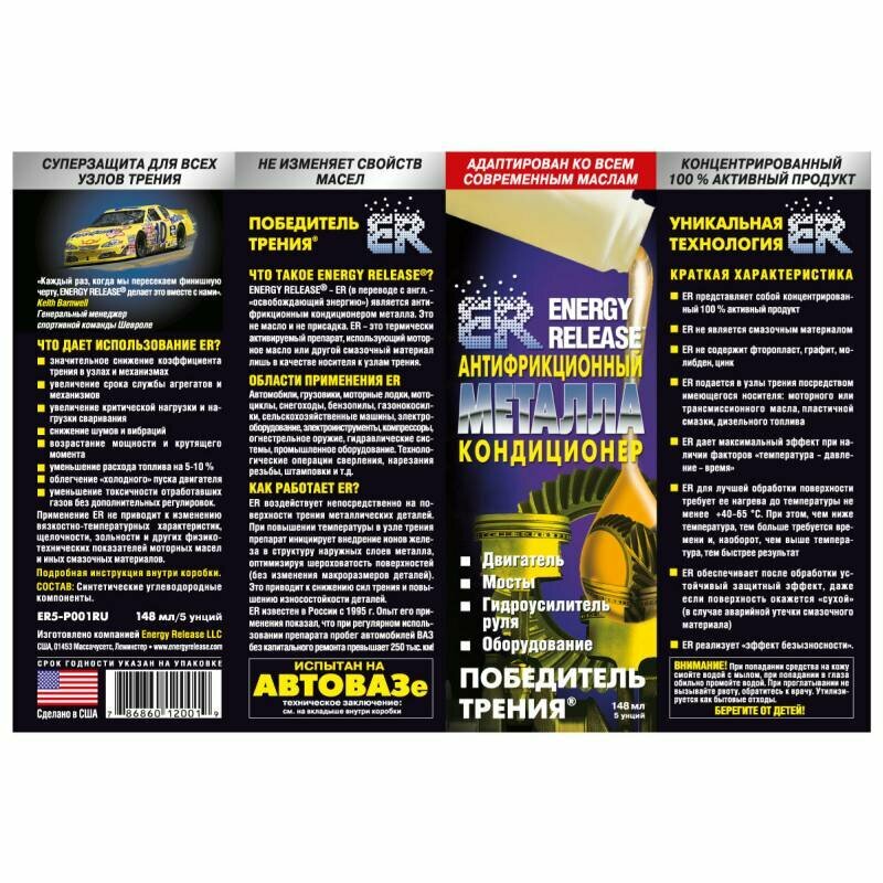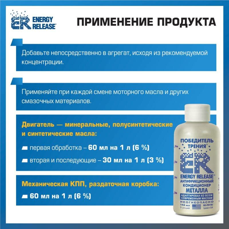 Антифрикционный кондиционер металла (ER-Победитель трения) Energy Release ENERGY RELEASE 473 мл, ER16P002RU Er ER16(P002RU)