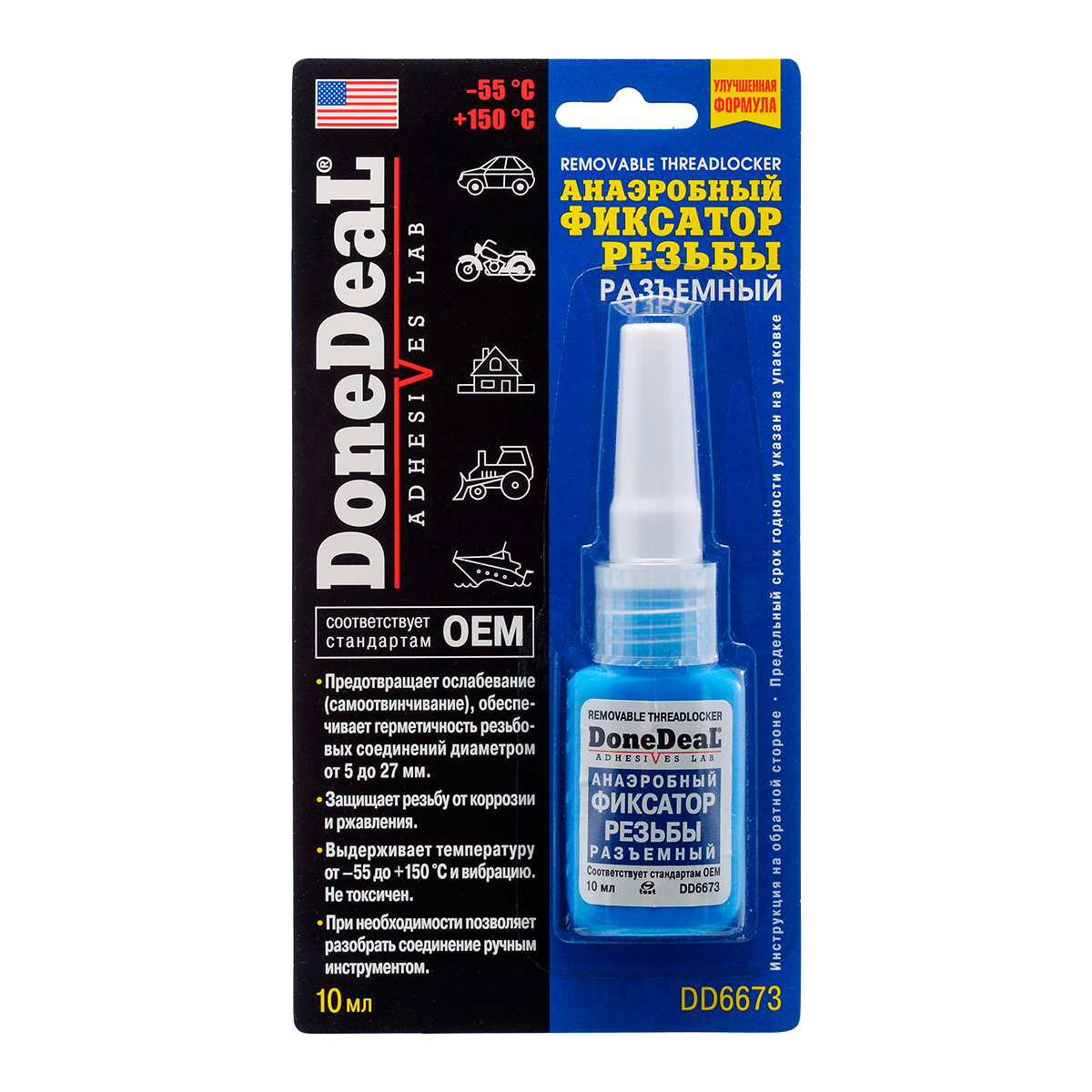 DONEDEAL DD6673 DD6673_=HG !10ml\ Анаэробный фиксатор резьбы разъемный. Герметезирует резьбовые соединения
