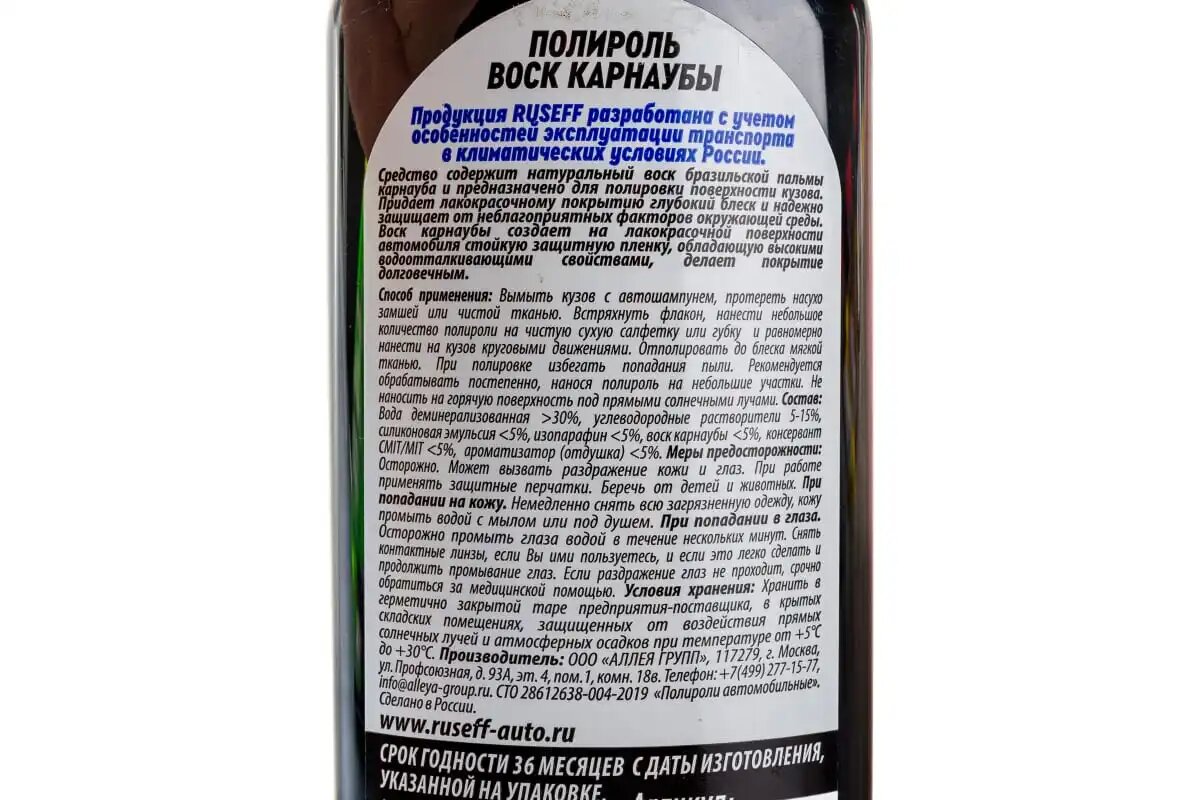 Полироль воск карнаубы RUSEFF 025л для защиты лакокрасочного покрытия кузова 11347N