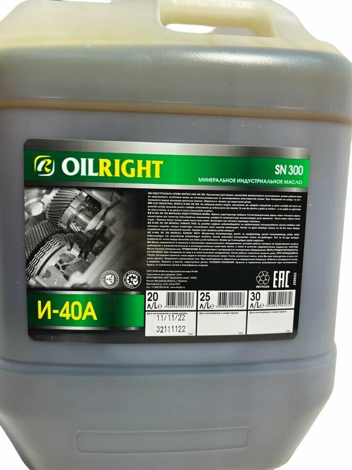 Масло индустриальное OILRIGHT И-40А Минеральное 20 л